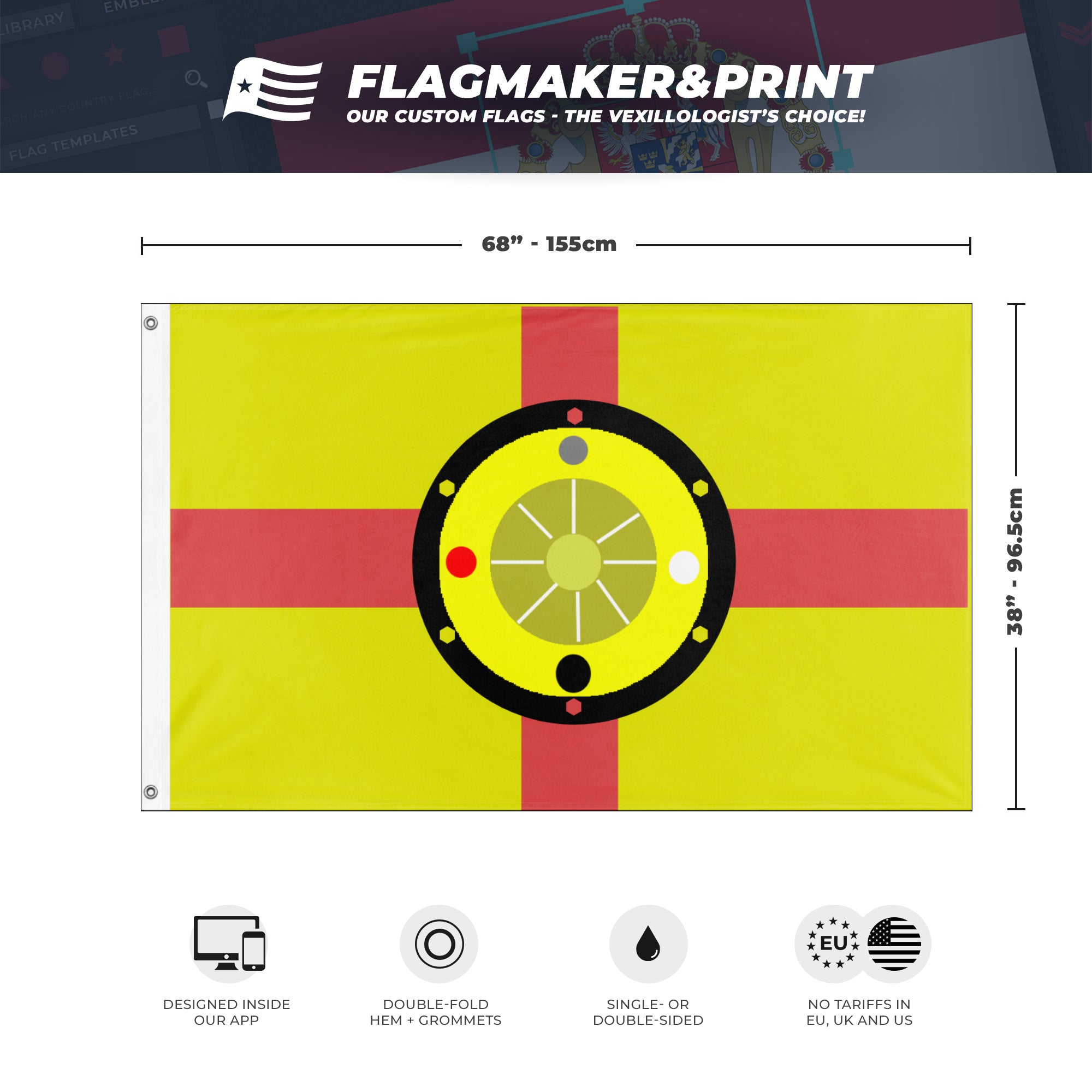 📐 Custom Personalized Flag made with Flagmaker & Print. Learn more about our product line-up on the Product Details page. This custom flag design is available as both a one-sided wall flag, or a double-sided display flag