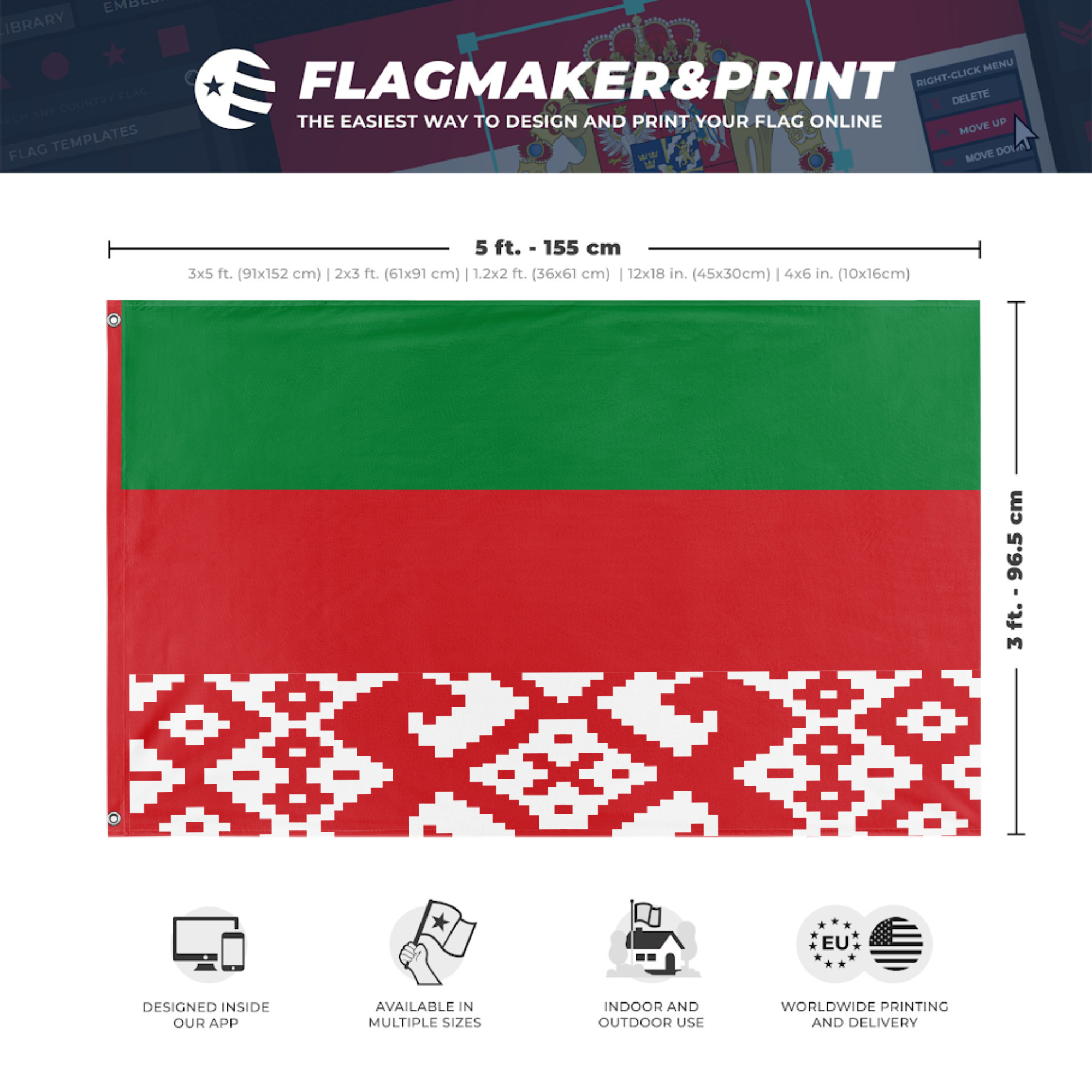 Our integrated flag maker app allows anyone to design and print their own flag. After finishing your design, you can print your flag in three easy steps.