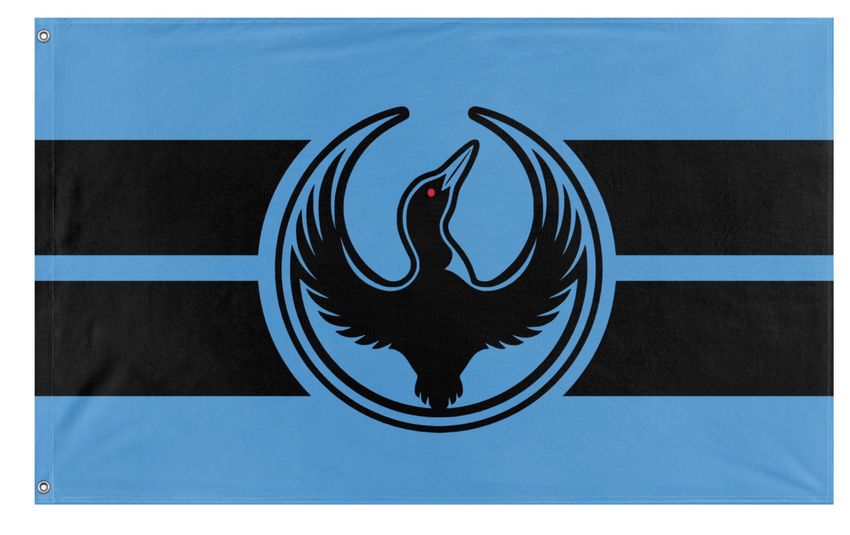 The 'Rebel Loon' emblem, also known as the 'Minnesota Rebel Alliance', is a Laser Loon-style heraldic emblem often depicted on Star-wars inspired flag patterns.