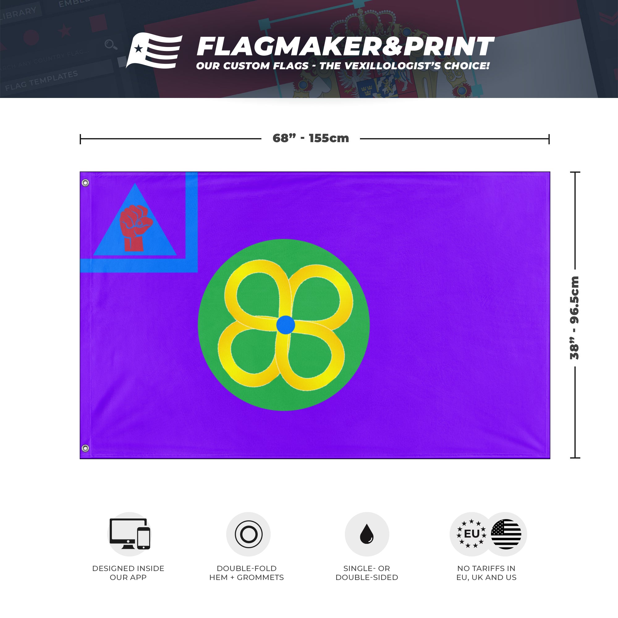 📐 Custom Flag made with Flagmaker & Print. Learn more about our product line-up on the Product Details page. This custom flag design is available as both a one-sided wall flag, or a double-sided display flag.