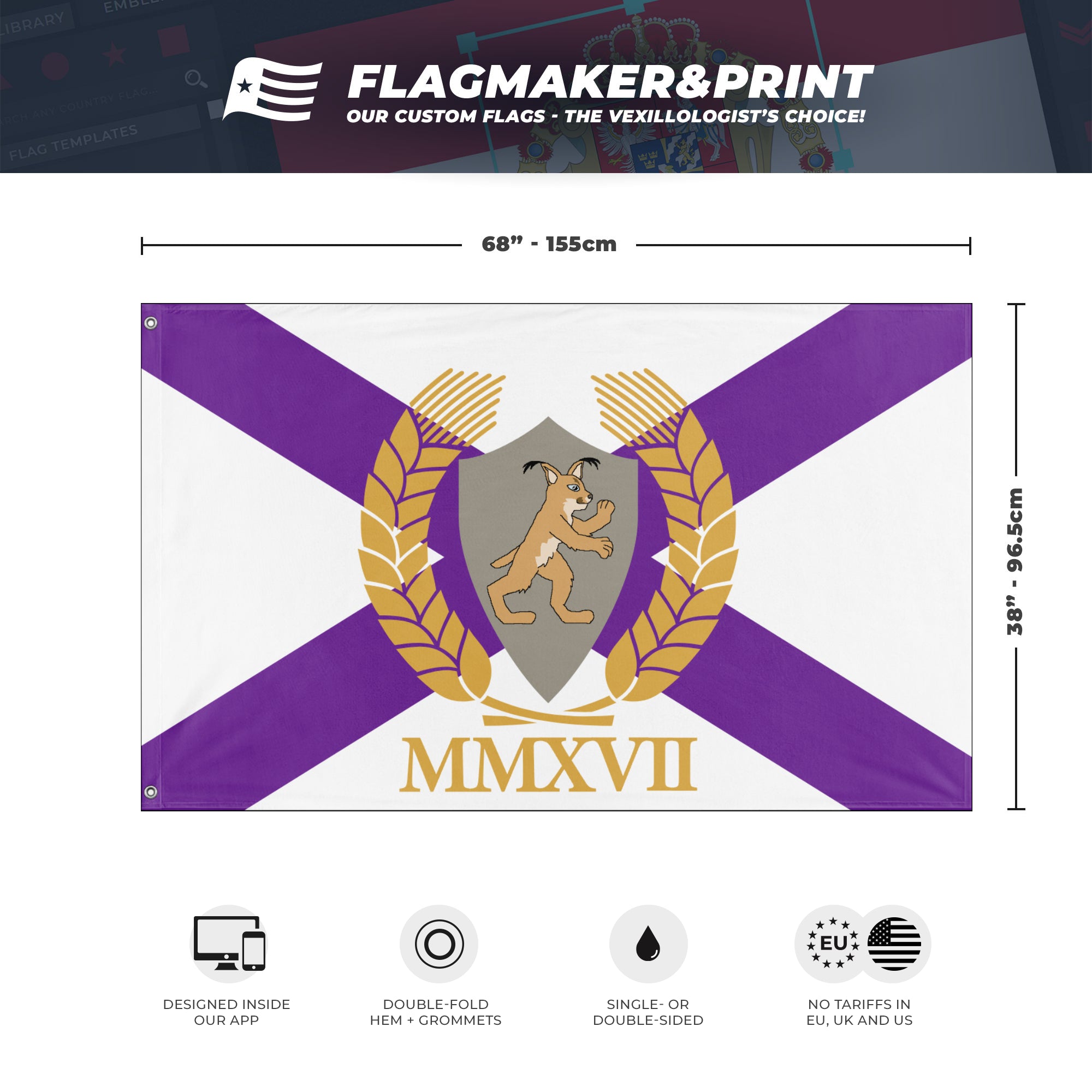 📐 Custom Flag made with Flagmaker & Print. Learn more about our product line-up on the Product Details page. This custom flag design is available as both a one-sided wall flag, or a double-sided display flag.