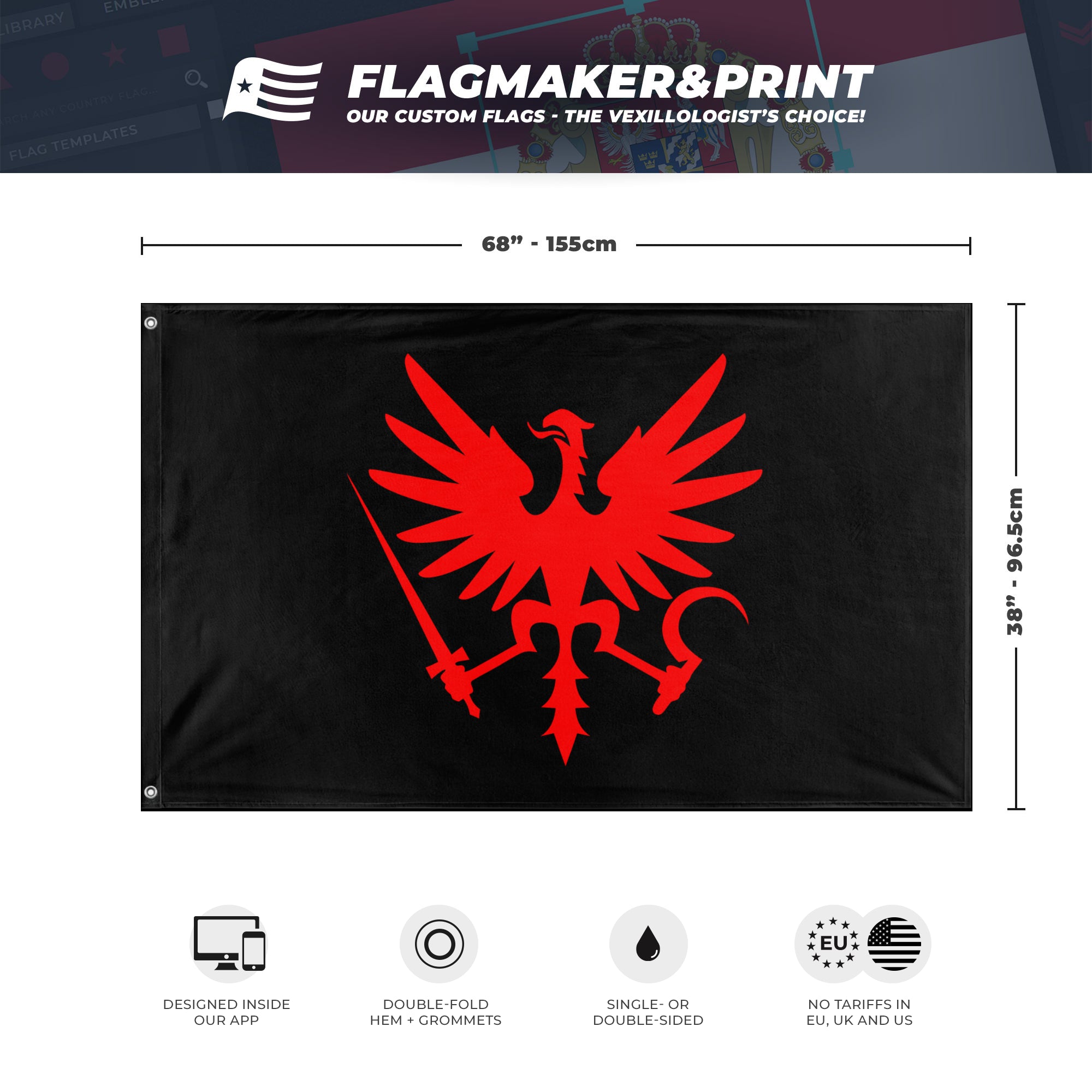 📐 Custom Personalized Flag made with Flagmaker & Print. Learn more about our product line-up on the Product Details page. This custom flag design is available as both a one-sided wall flag, or a double-sided display flag