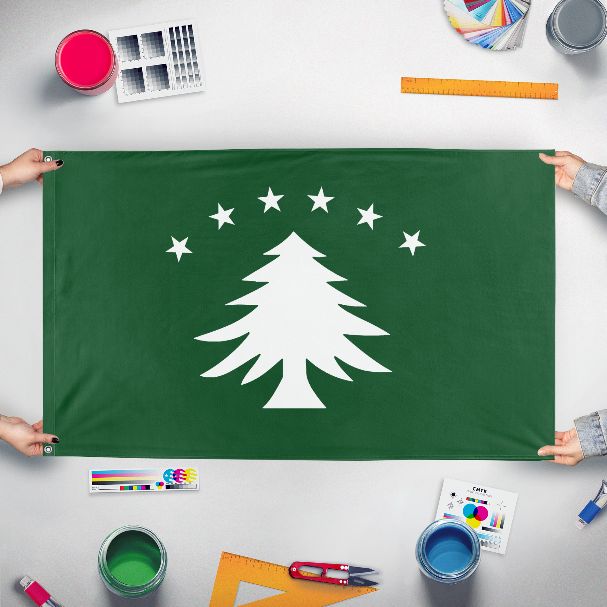 Our integrated flag maker app allows anyone to design and print their own flag. After finishing your design, you can print your flag in three easy steps.