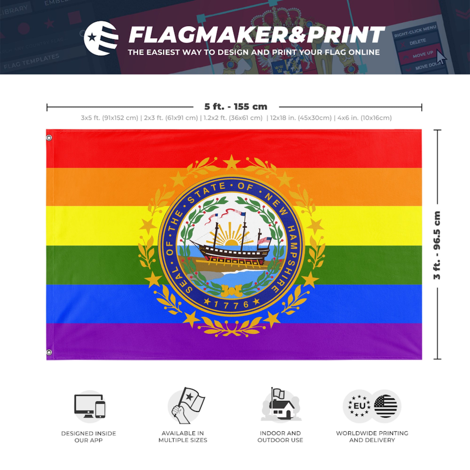 ✒️ The New Hampshire Pride Flag Pride Movement is a state-level initiative focused on promoting LGBTQ+ representation and unity through the creation and widespread display of a uniquely designed pride flag. Emerging in the 2020s, the movement integrates traditional LGBTQ+ colors with symbols and motifs reflecting New Hampshire’s natural landscapes and cultural identity. The flag has been embraced at pride events, civic spaces, and educational institutions as a visible testament to the state’s support for diversity and inclusion. The movement continues to advocate for equality, awareness, and community empowerment across New Hampshire.