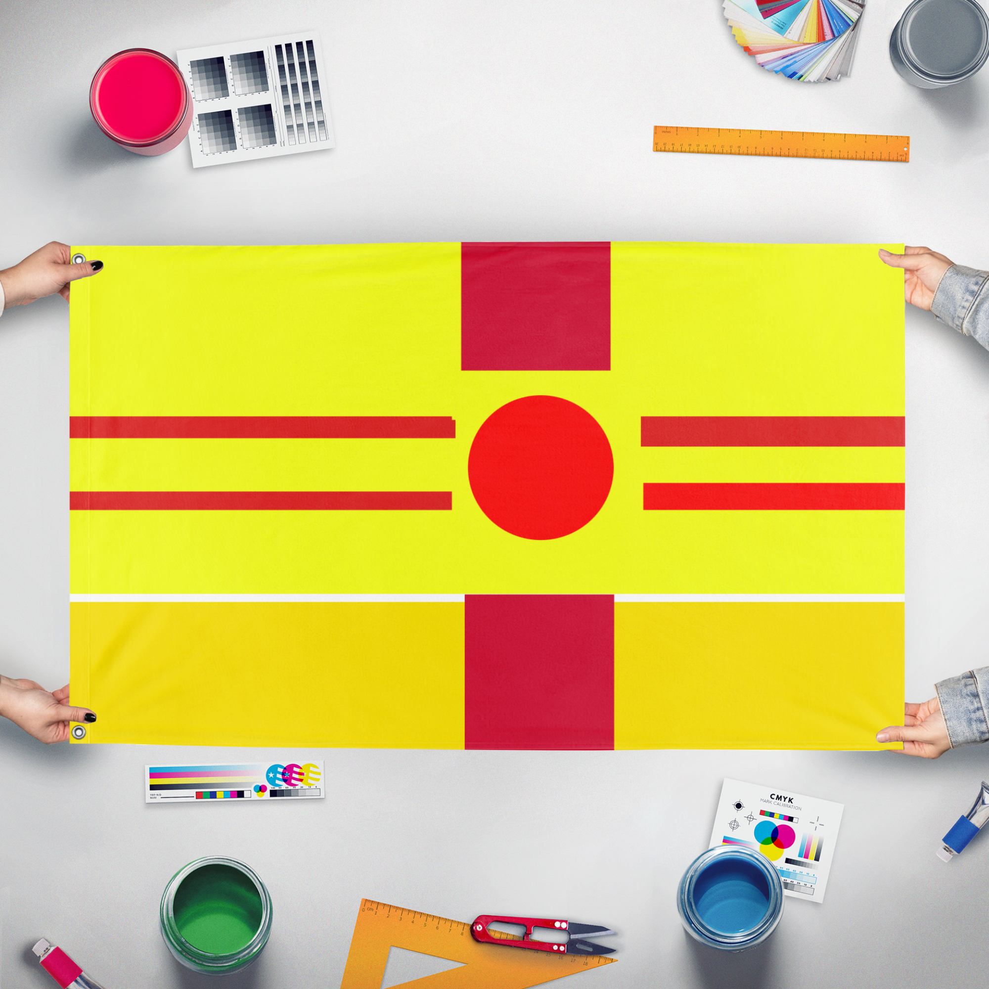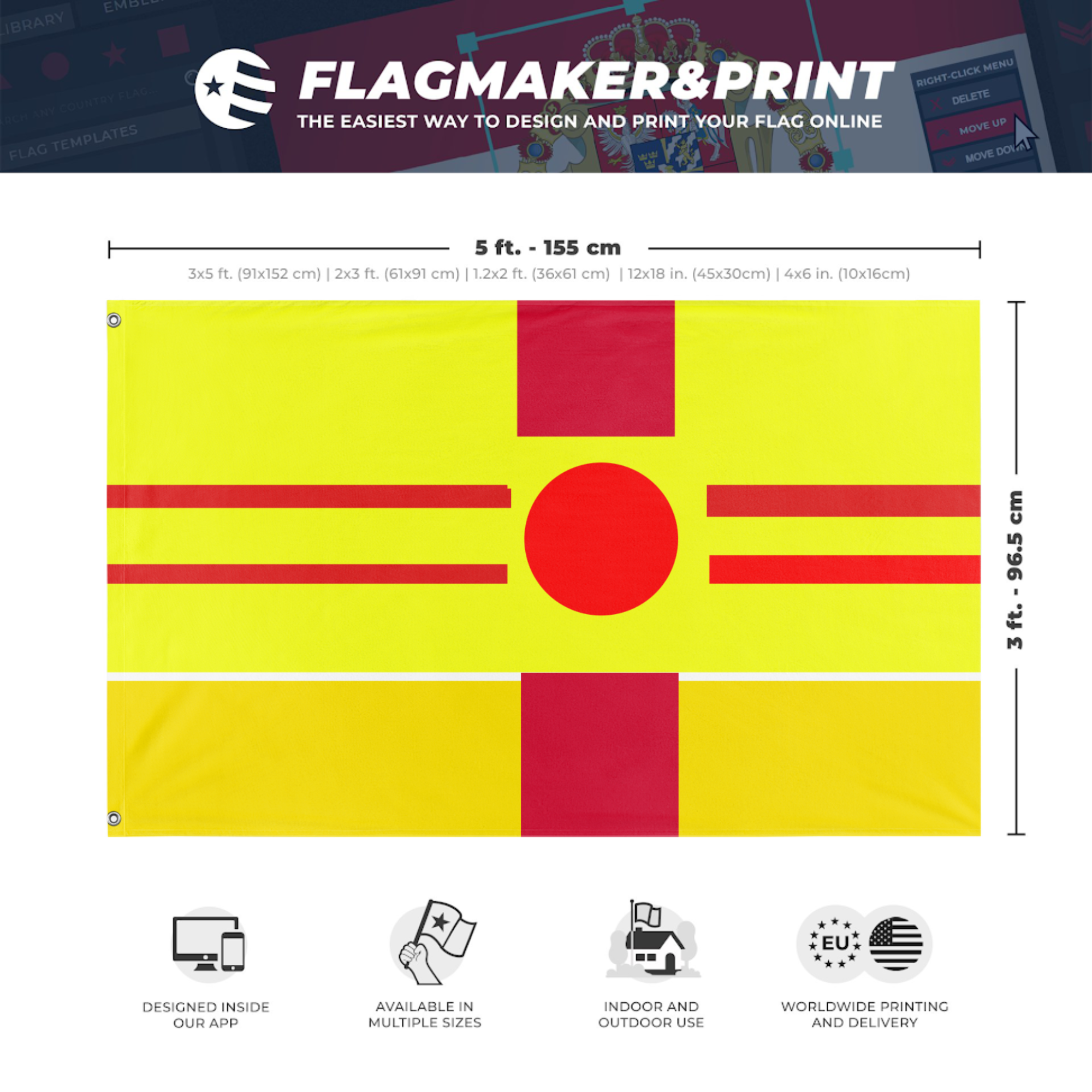 Our integrated flag maker app allows anyone to design and print their own flag. After finishing your design, you can print your flag in three easy steps.