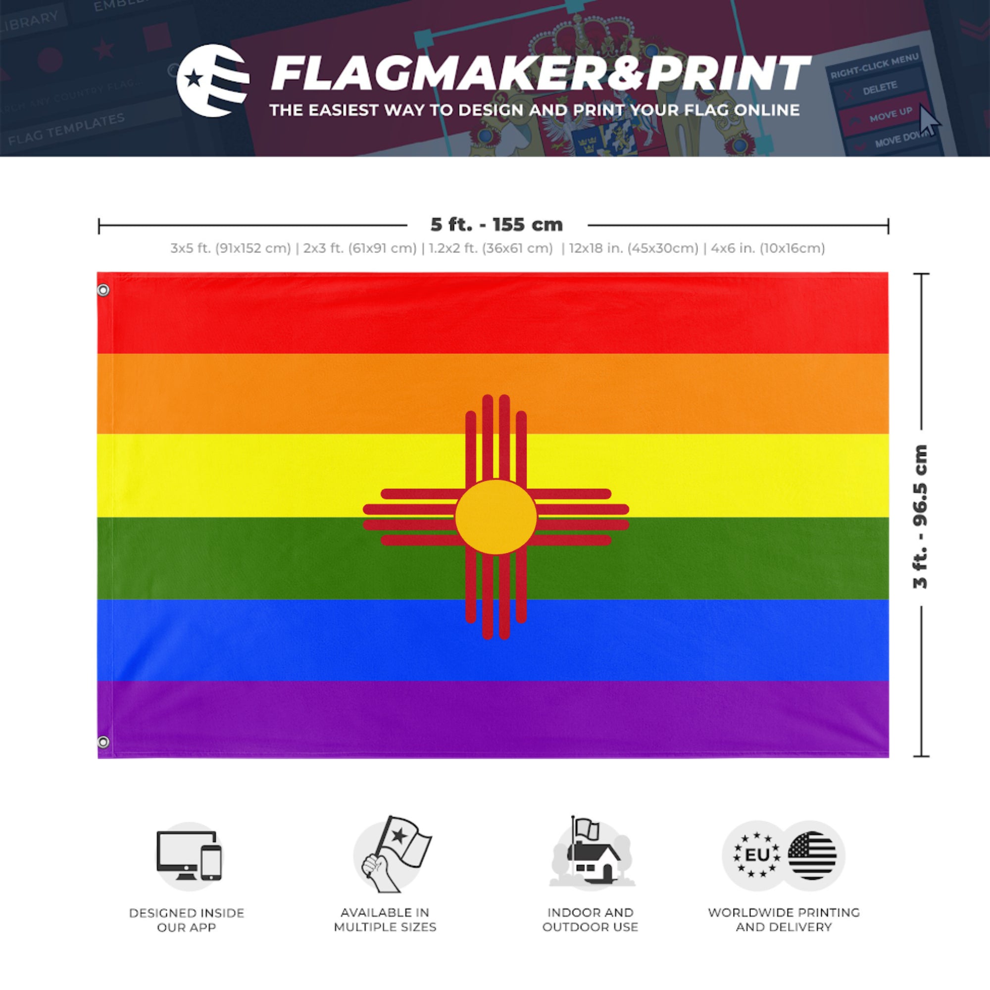 ✒️ The New Mexico Pride Flag Pride Movement is a state-based initiative established in the 2020s to promote LGBTQ+ visibility, inclusion, and cultural representation through a uniquely designed pride flag. The flag incorporates iconic elements of New Mexico’s identity—such as its Indigenous heritage, desert landscapes, and vibrant artistic traditions—alongside the colors and symbolism of the LGBTQ+ community. Serving as a unifying emblem, the flag has been prominently displayed in pride parades, civic institutions, and community events across the state. The movement continues to advocate for equity, visibility, and cultural pride among New Mexico’s diverse LGBTQ+ population.
