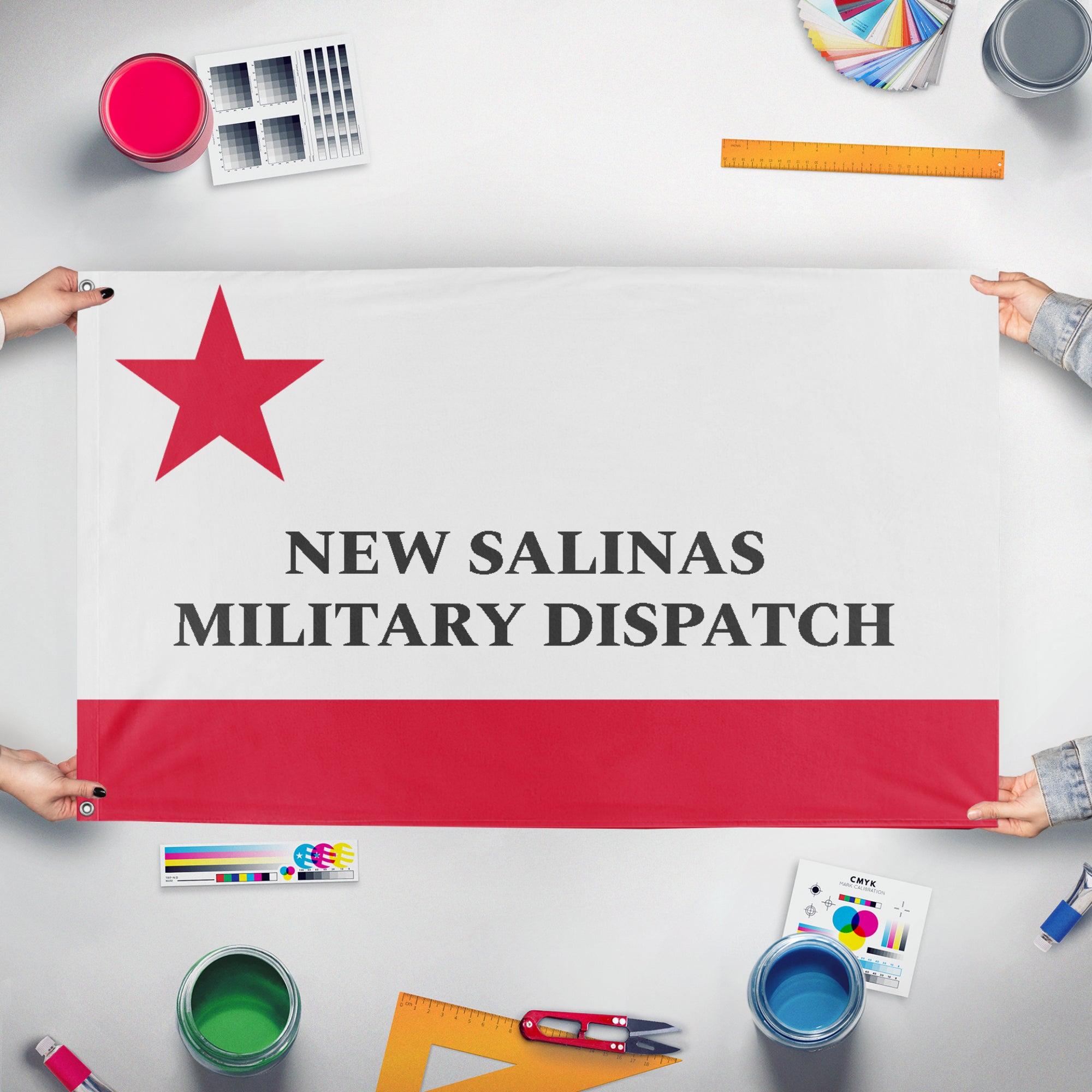 Our integrated flag maker app allows anyone to design and print their own flag. After finishing your design, you can print your flag in three easy steps.