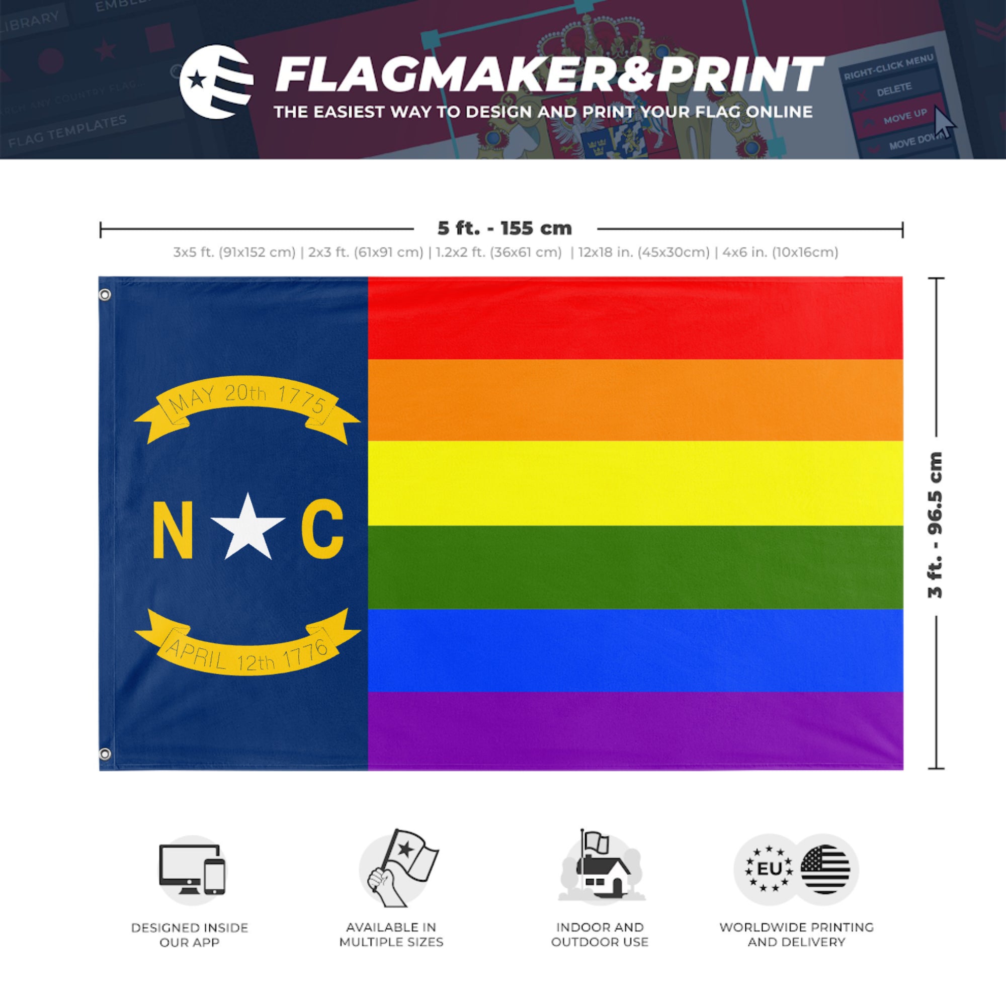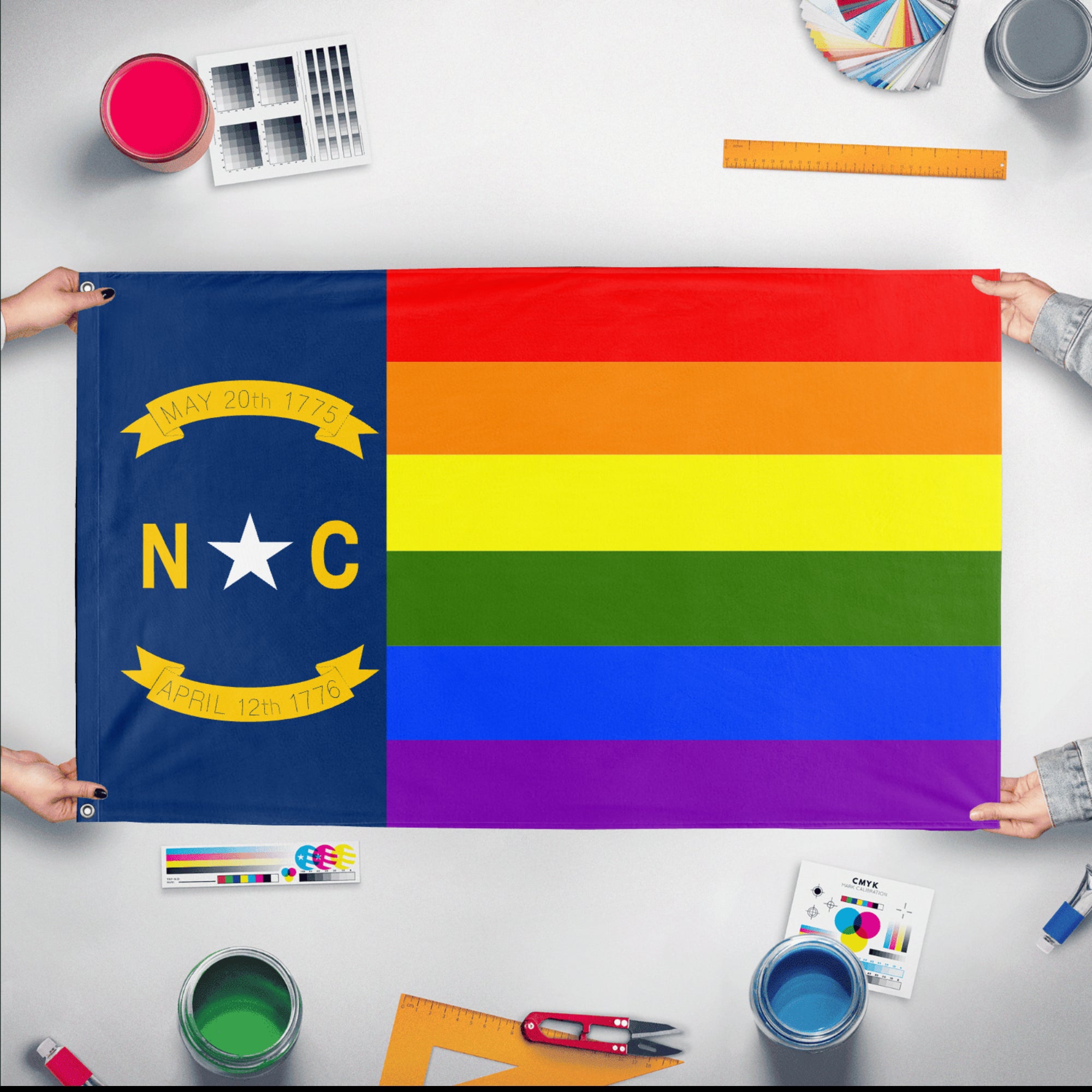 ✒️ The North Carolina Pride Flag Pride Movement is a statewide initiative that began in the 2020s with the goal of fostering LGBTQ+ visibility, inclusion, and community through the development of a pride flag tailored to North Carolina’s cultural and geographic identity. The movement combines traditional LGBTQ+ symbols with imagery that reflects the state’s diverse landscapes, from the Appalachian Mountains to the Atlantic coast, as well as its historical significance in the broader civil rights movement. Displayed at pride events, civic gatherings, and educational institutions, the flag serves as a unifying emblem for LGBTQ+ residents. The movement continues to advocate for equality, awareness, and acceptance across North Carolina.