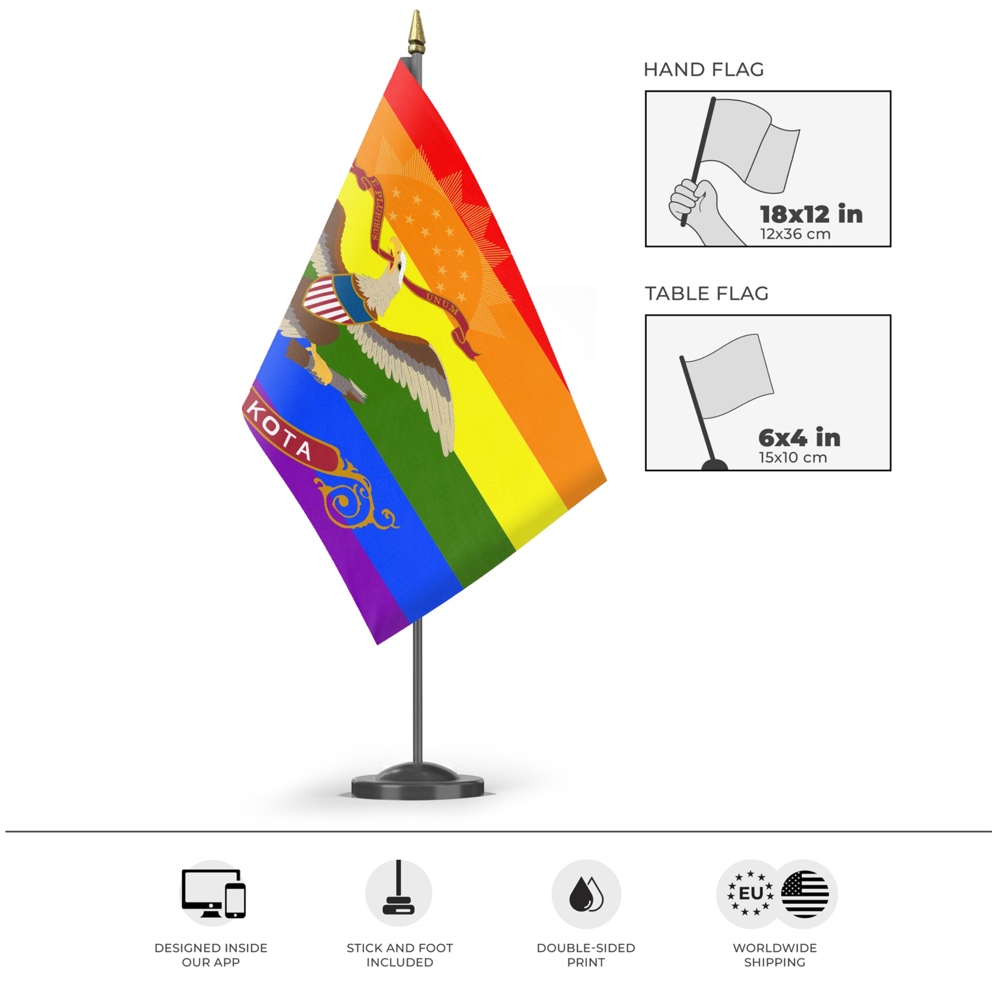 Flagmaker & Print offers best-of-class custom flags in over 32 sizes and variations. Our custom flag print offering ranges from 3x5ft outdoors flags to small desk and hand-waving flags.