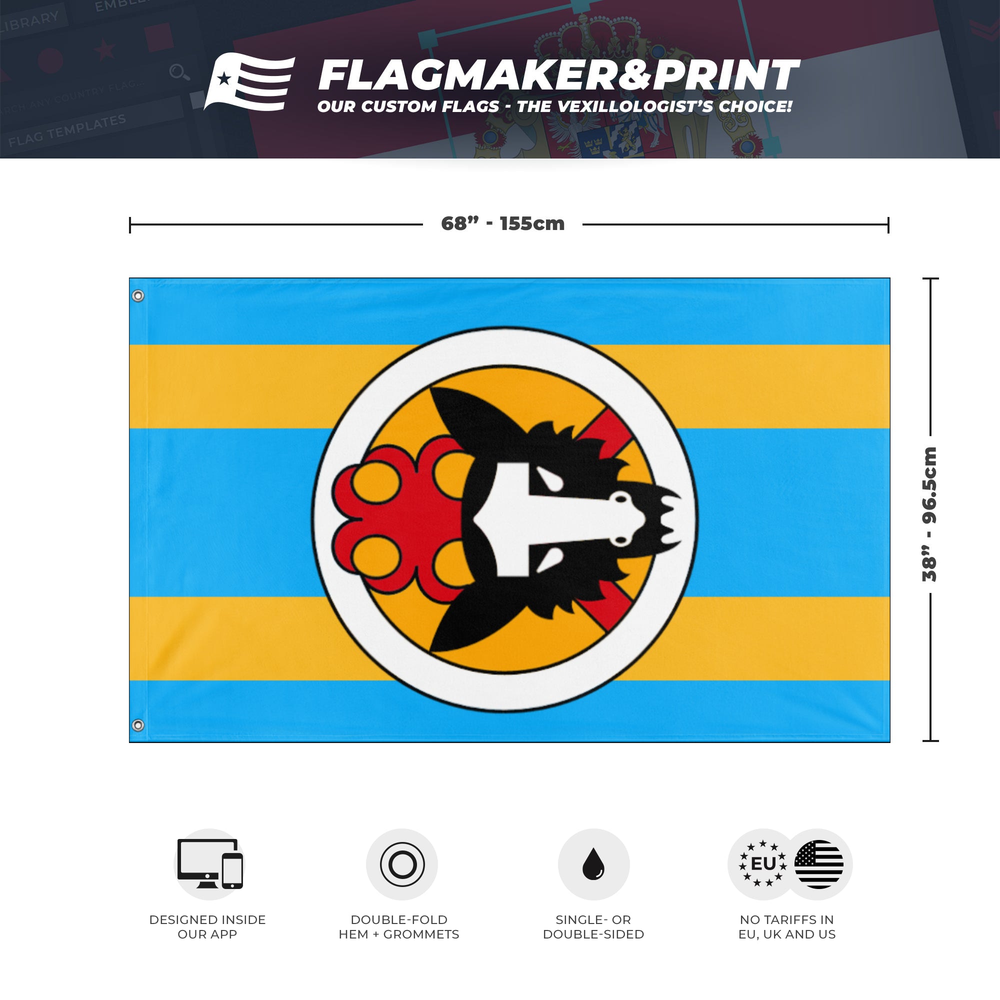 📐 Custom Personalized Flag made with Flagmaker & Print. Learn more about our product line-up on the Product Details page. This custom flag design is available as both a one-sided wall flag, or a double-sided display flag