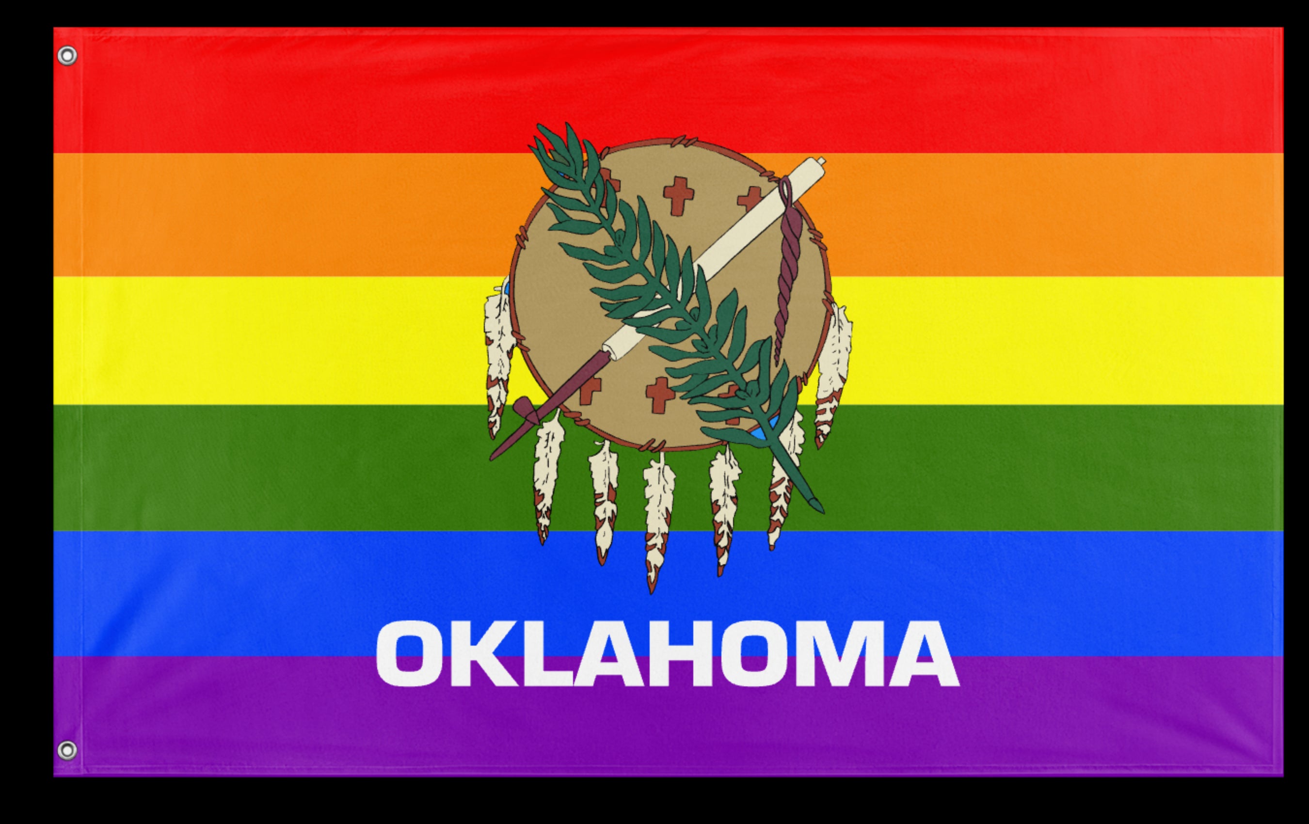 ✒️ The Oklahoma Pride Flag Pride Movement is a grassroots effort that began in the 2020s to uplift and unify LGBTQ+ communities throughout the state by creating a pride flag that reflects Oklahoma’s cultural and historical identity. Blending the colors and symbols of the broader LGBTQ+ movement with elements representative of Oklahoma’s Indigenous heritage, natural landscape, and frontier spirit, the flag has become a prominent emblem of pride and resilience. It is displayed at pride events, advocacy campaigns, and public institutions, symbolizing a commitment to equality, inclusivity, and community empowerment across the state. The movement continues to foster awareness and support for LGBTQ+ rights in Oklahoma.