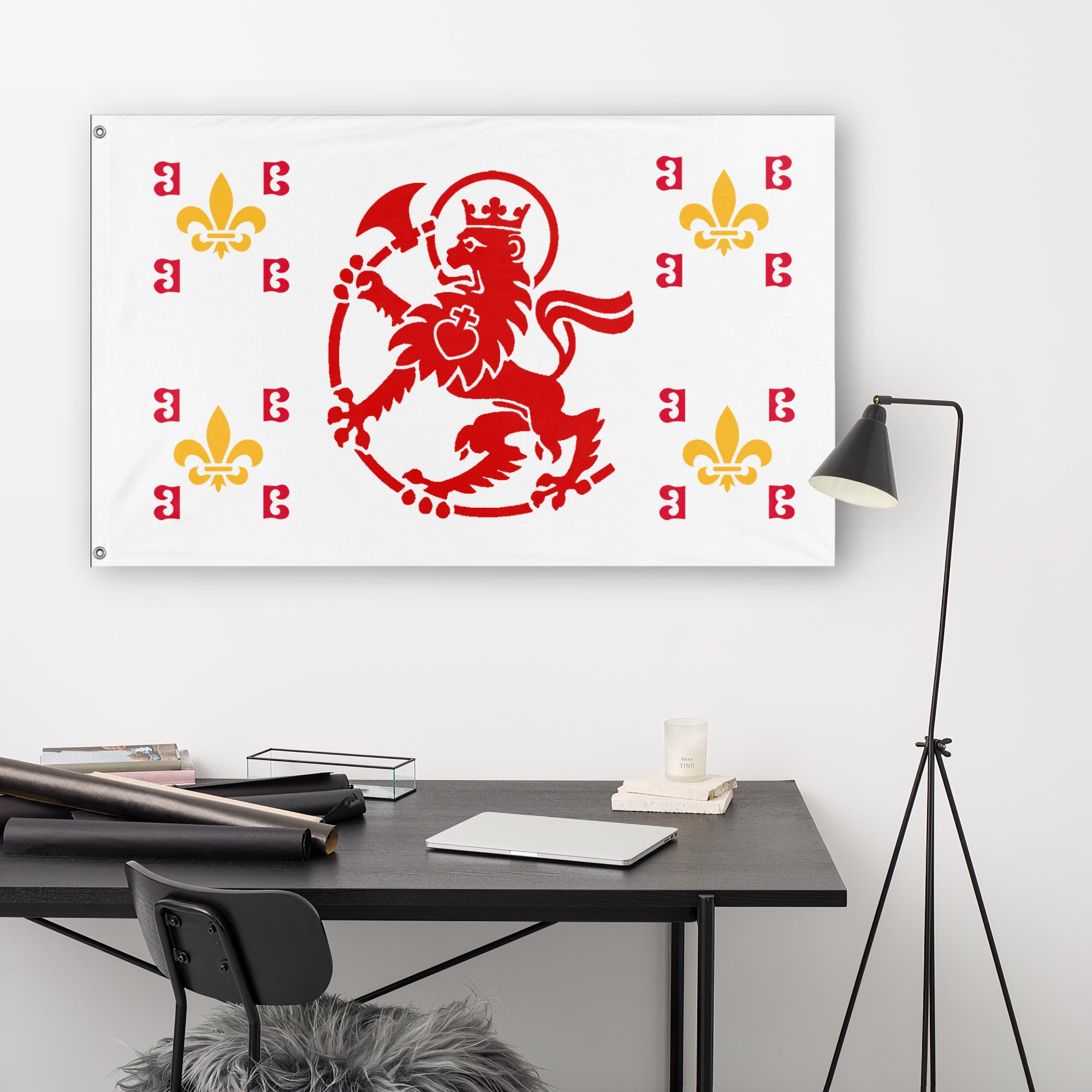 Our 3x5ft flags are made of 100% polyester knit; equipped with grommets for an authentic look and feel. This custom flag design is available as both a one-sided wall flag, or a double-sided display flag.