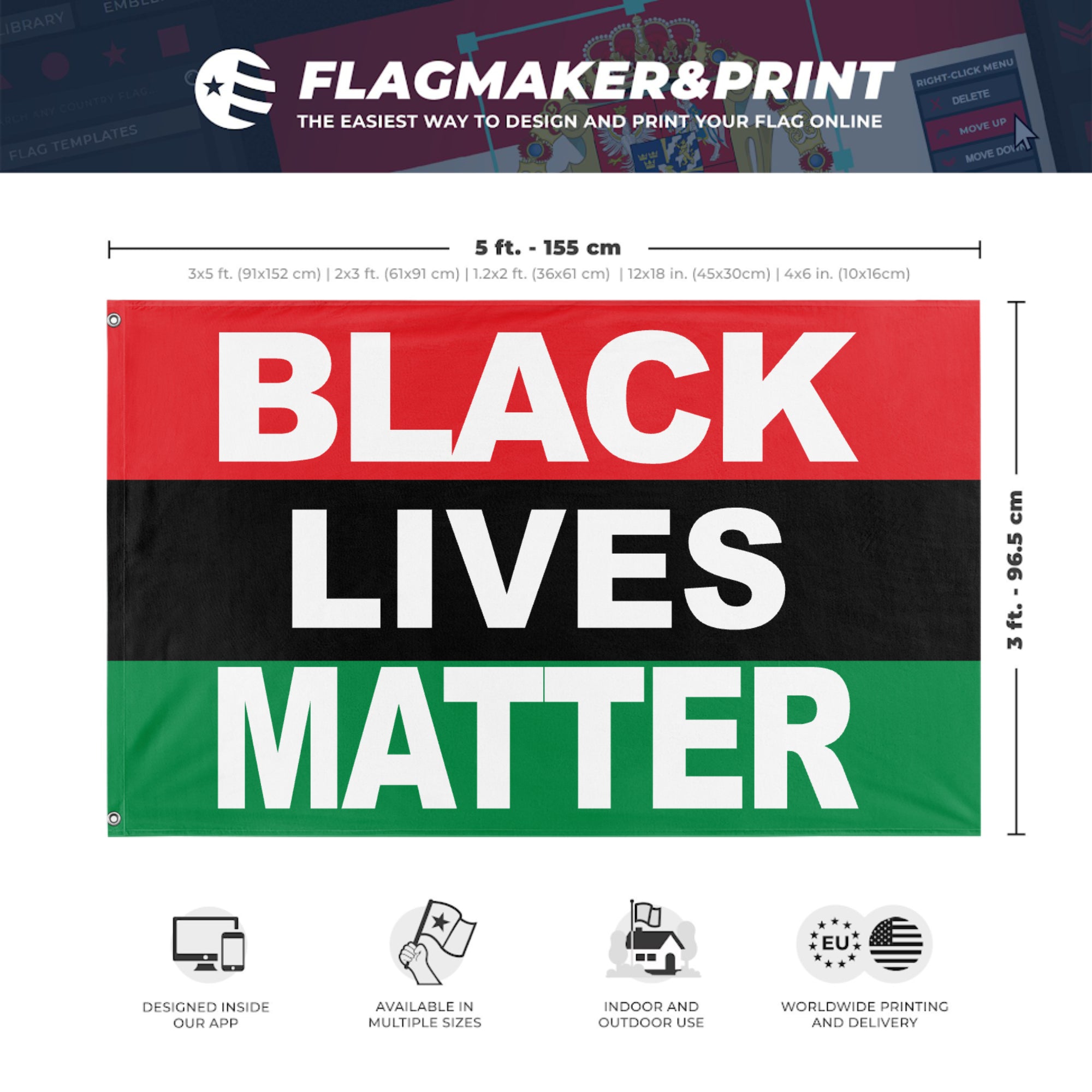✒️ The Pan-African Black Lives Matter flag combines elements of the Pan-African flag with the Black Lives Matter movement’s message to symbolize solidarity, racial justice, and African heritage. Typically, it features the Pan-African colors—red, black, and green—arranged in horizontal stripes, often with the phrase “Black Lives Matter” prominently displayed across the design. This flag merges the historical significance of Pan-Africanism with contemporary activism, emphasizing unity, resistance against systemic racism, and the ongoing fight for equality and human rights.