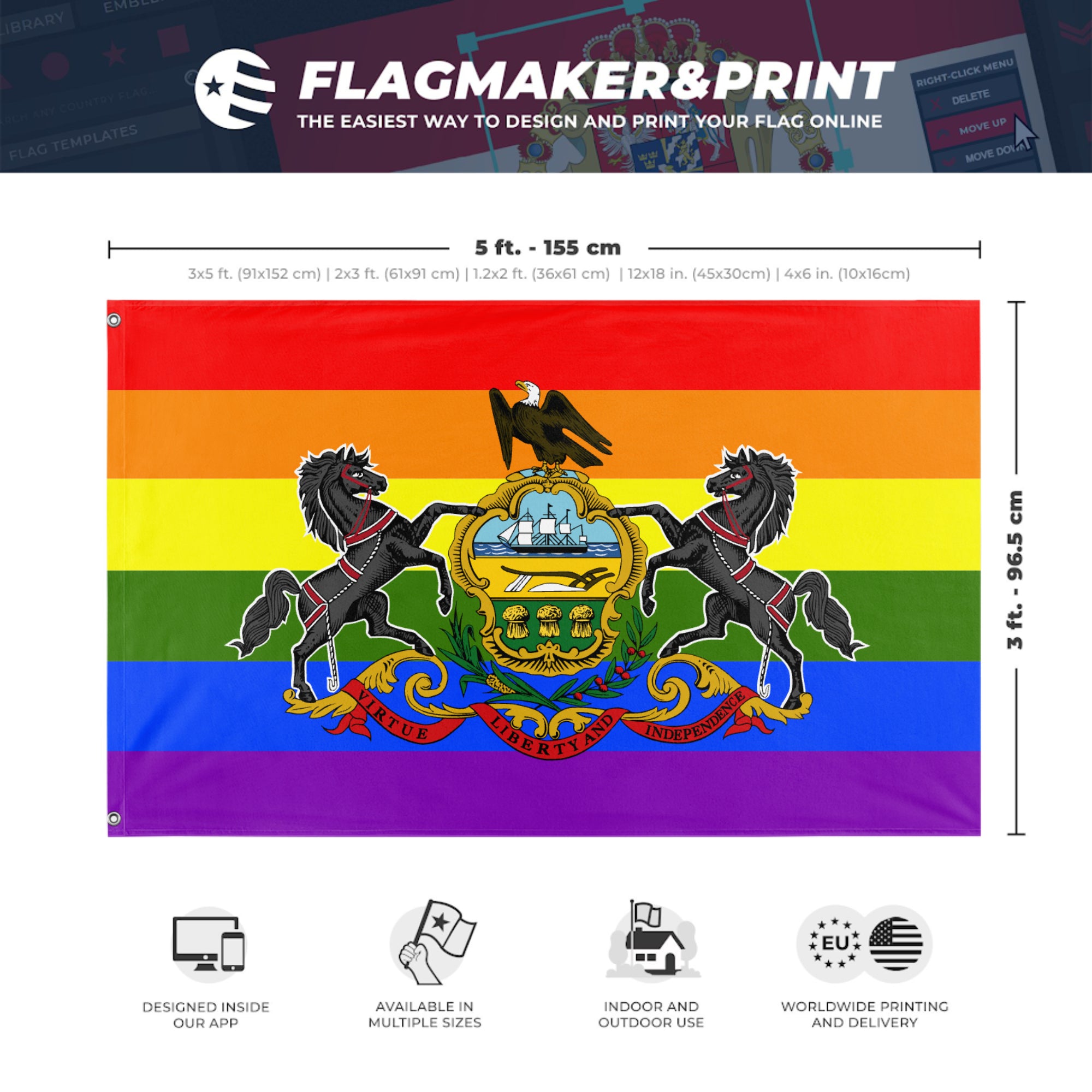 ✒️ The Pennsylvania Pride Flag Pride Movement is a statewide initiative that began in the 2020s to celebrate and advocate for LGBTQ+ visibility and inclusion through the creation of a pride flag reflecting Pennsylvania’s unique heritage and identity. Merging traditional LGBTQ+ colors with visual references to the state’s historical significance, industrial legacy, and diverse landscapes, the flag has become a prominent symbol of pride, unity, and progress. It is frequently displayed at pride events, educational institutions, and public spaces throughout the state. The movement continues to promote equality, awareness, and representation for LGBTQ+ individuals across Pennsylvania.