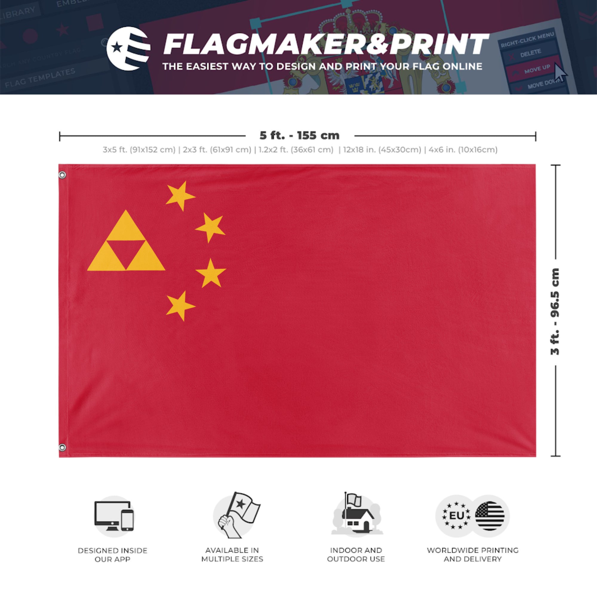 Our integrated flag maker app allows anyone to design and print their own flag. After finishing your design, you can print your flag in three easy steps.