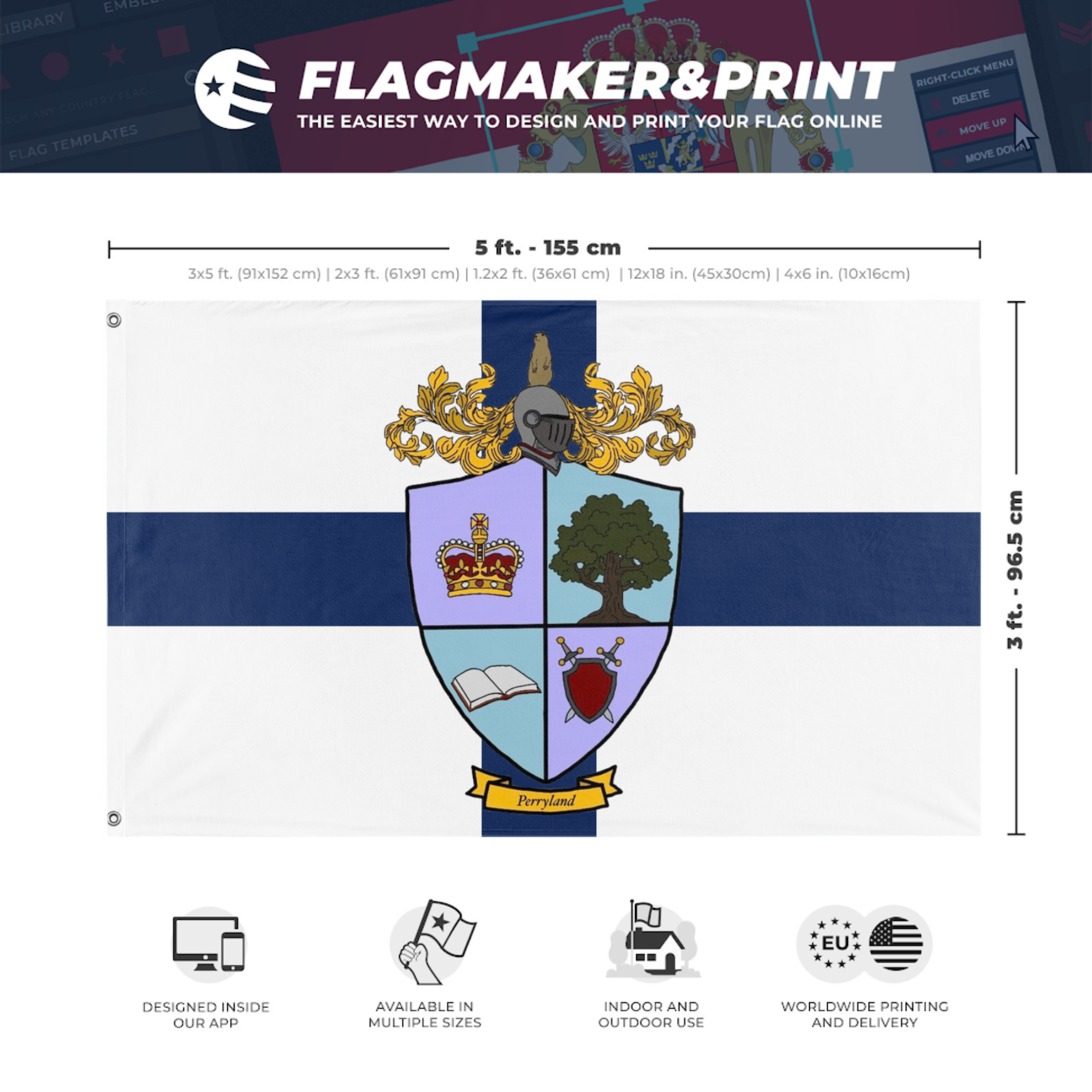 📐 Custom Personalized Flag made with Flagmaker & Print. Learn more about our product line-up on the Product Details page. This custom flag design is available as both a one-sided wall flag, or a double-sided display flag