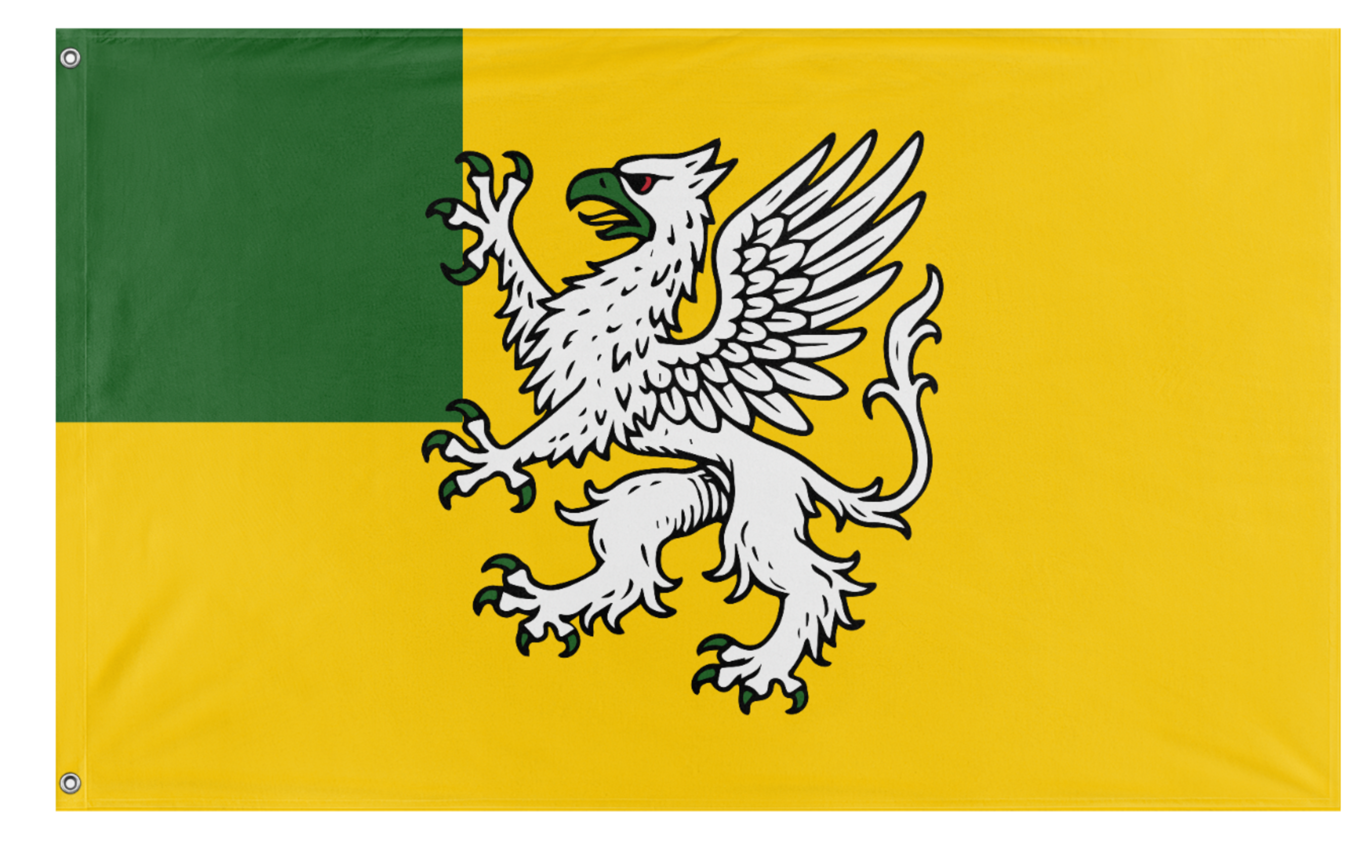 Or, a Quarter Vert, a griffin Argent orbed sanguine