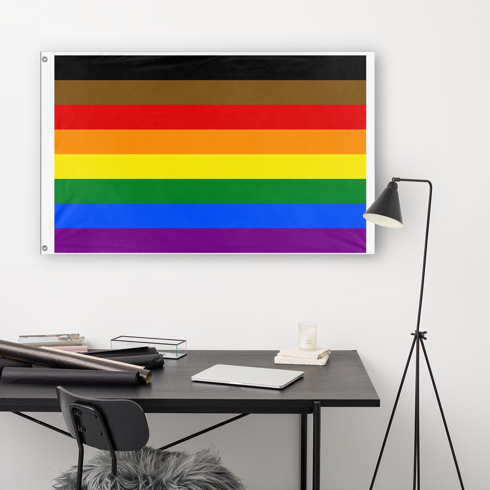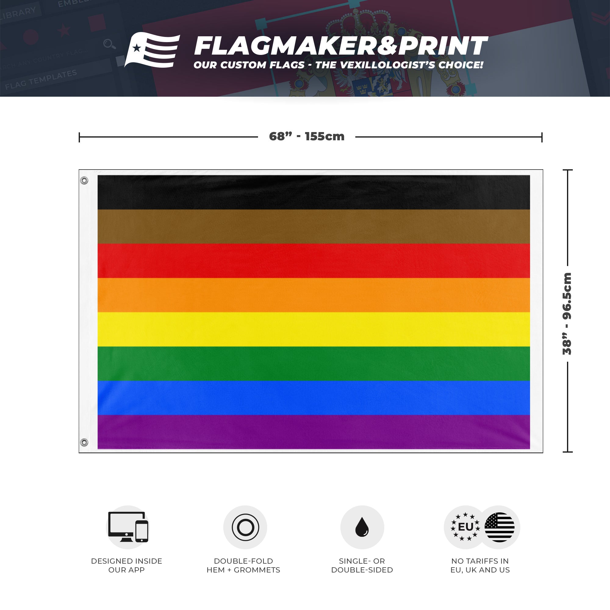 ✒️ The Philadelphia Pride Flag is an inclusive variation of the traditional rainbow pride flag, first introduced in 2017 by the city of Philadelphia in collaboration with the LGBTQ+ community. It features the classic six-color rainbow design with two additional stripes—black and brown—added above the red stripe to represent LGBTQ+ people of color and acknowledge their vital role and experiences within the broader queer movement. The flag was created as part of the "More Color More Pride" campaign to address issues of racism and promote greater inclusion within LGBTQ+ spaces. Since its debut, the Philadelphia Pride Flag has been widely adopted as a symbol of intersectional pride and solidarity.