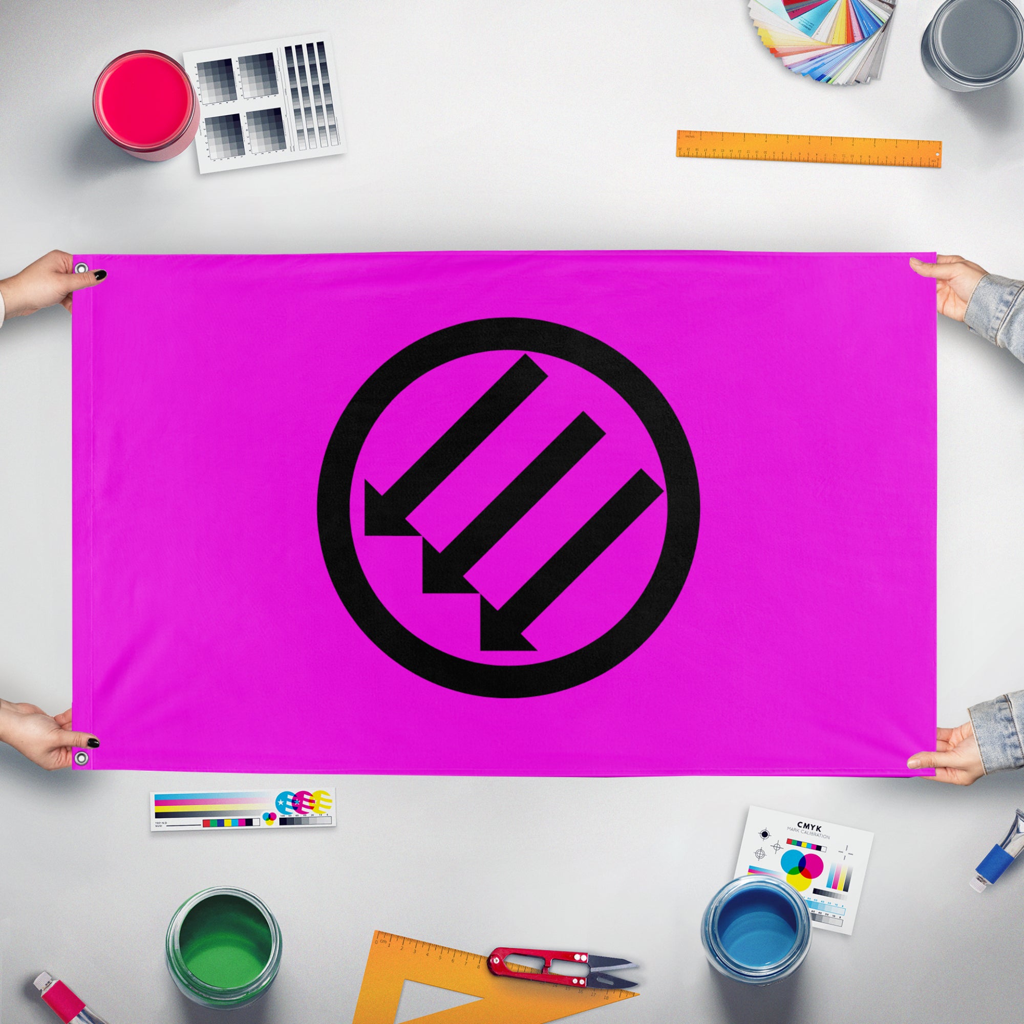 Our integrated flag maker app allows anyone to design and print their own flag. After finishing your design, you can print your flag in three easy steps.