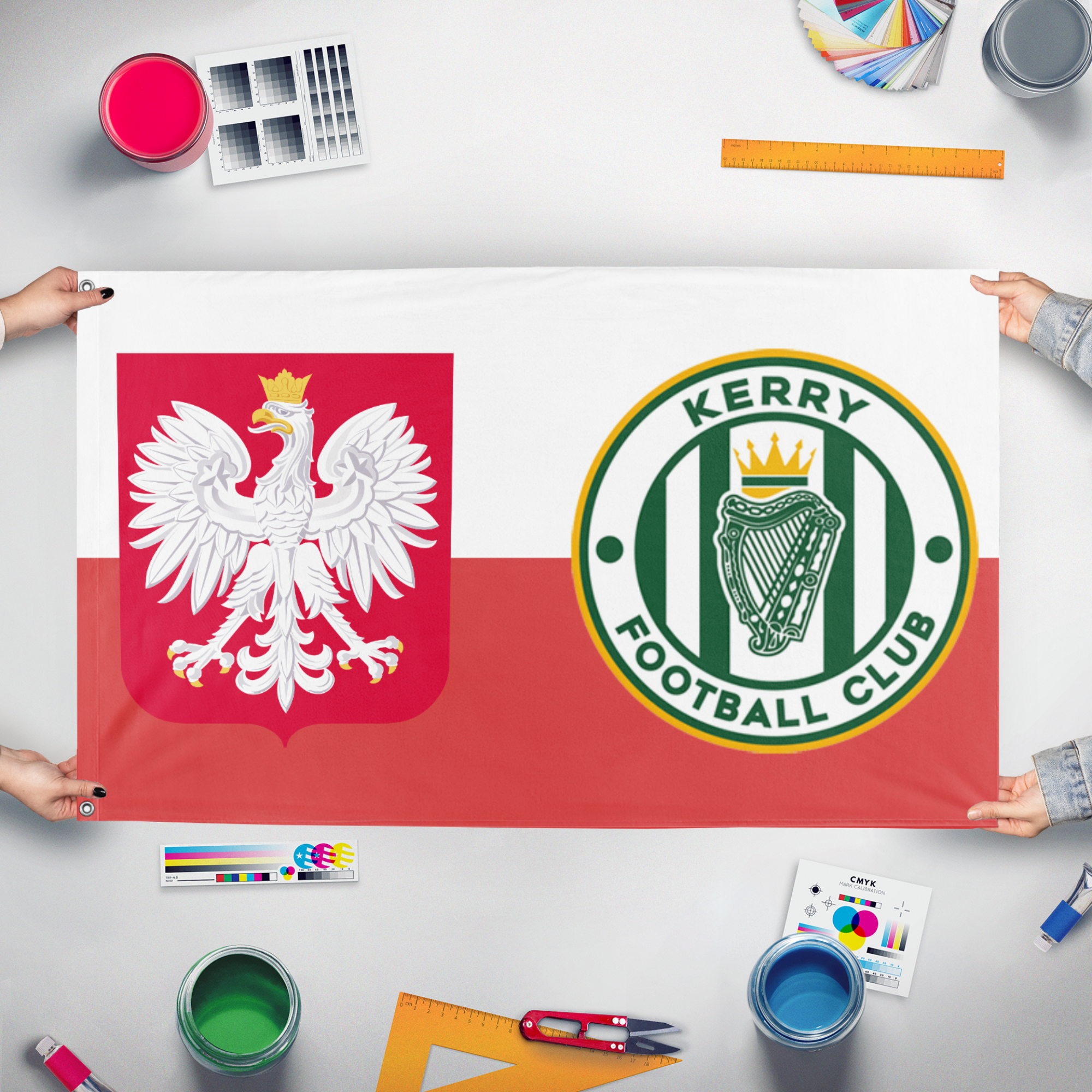 Flagmaker & Print offers best-of-class custom flags in over 32 sizes and variations. Our custom flag print offering ranges from 3x5ft outdoors flags to small desk and hand-waving flags.