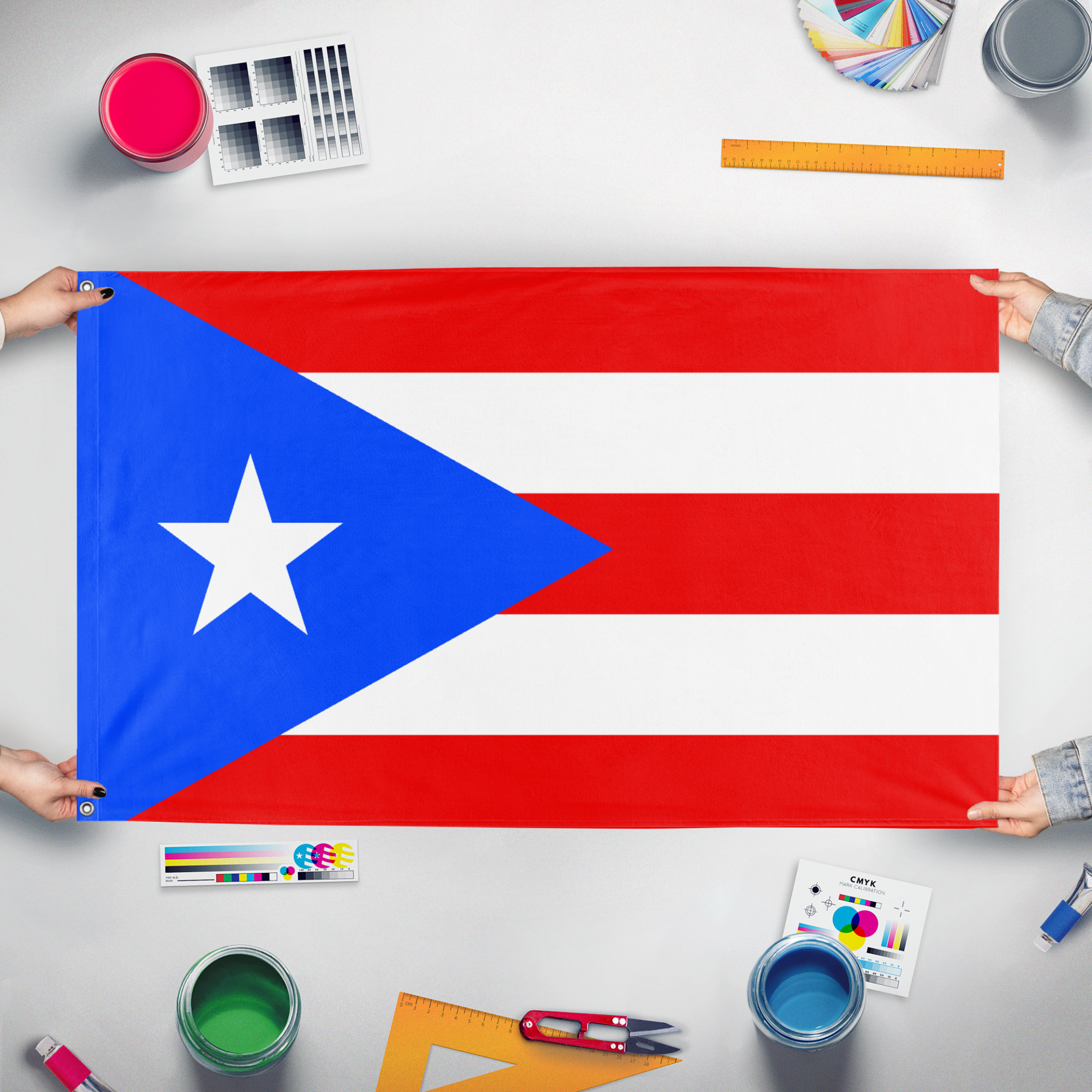 Our integrated flag maker app allows anyone to design and print their own flag. After finishing your design, you can print your flag in three easy steps.
