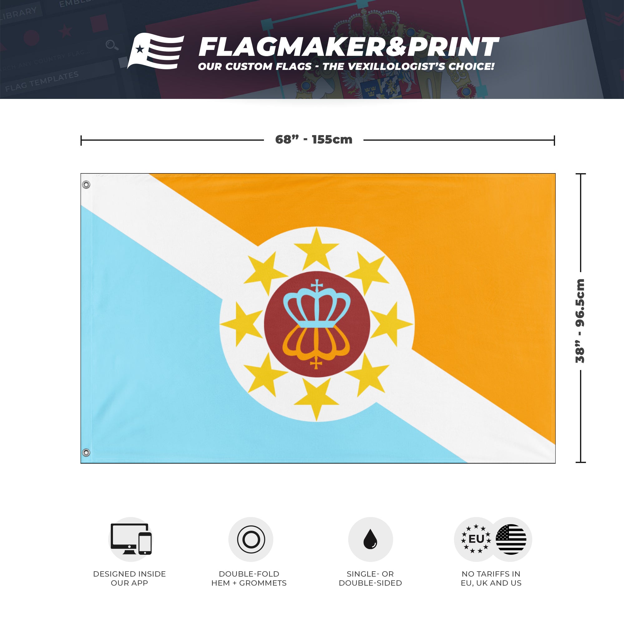 📐 Custom Personalized Flag made with Flagmaker & Print. Learn more about our product line-up on the Product Details page. This custom flag design is available as both a one-sided wall flag, or a double-sided display flag