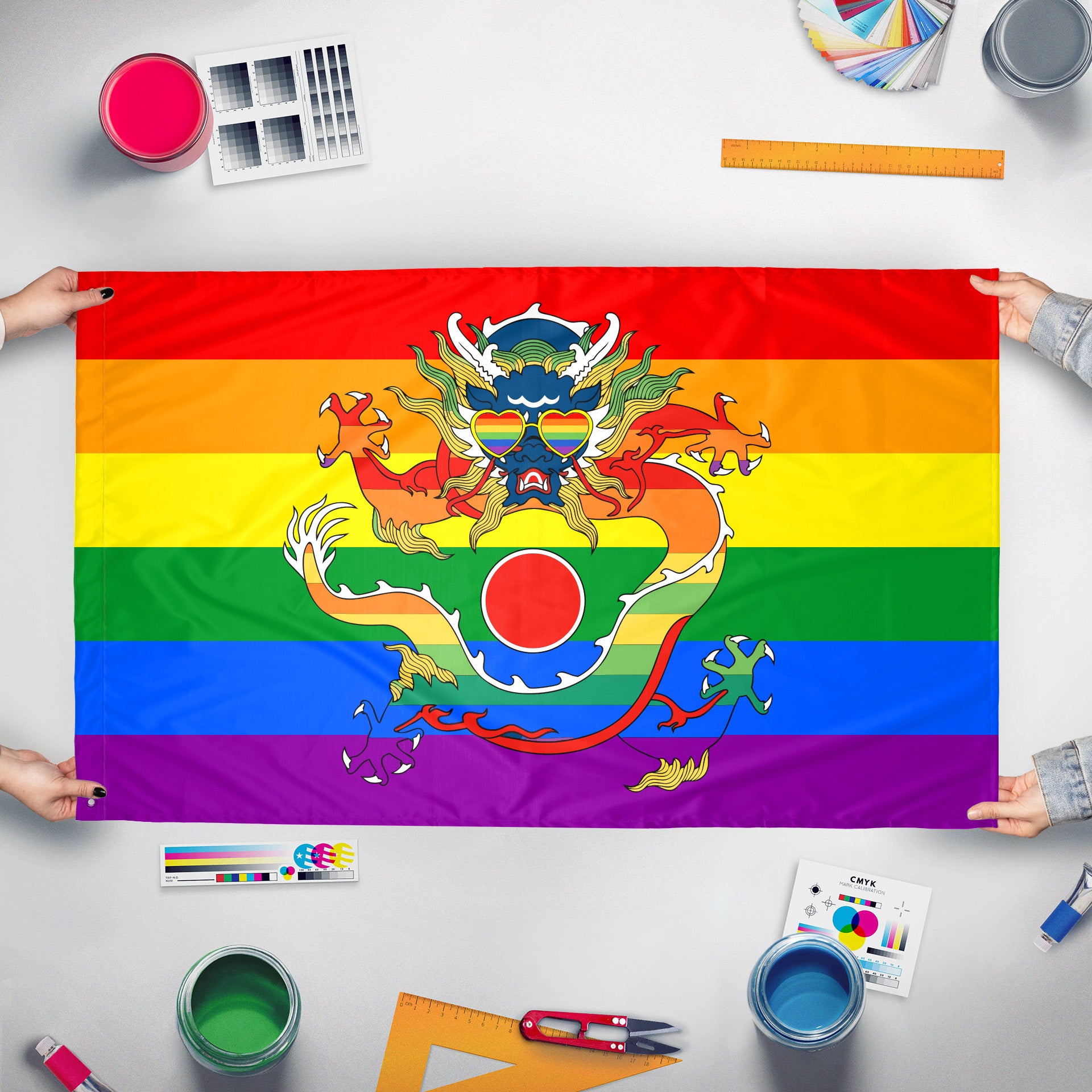 Our integrated flag maker app allows anyone to design and print their own flag. After finishing your design, you can print your flag in three easy steps.