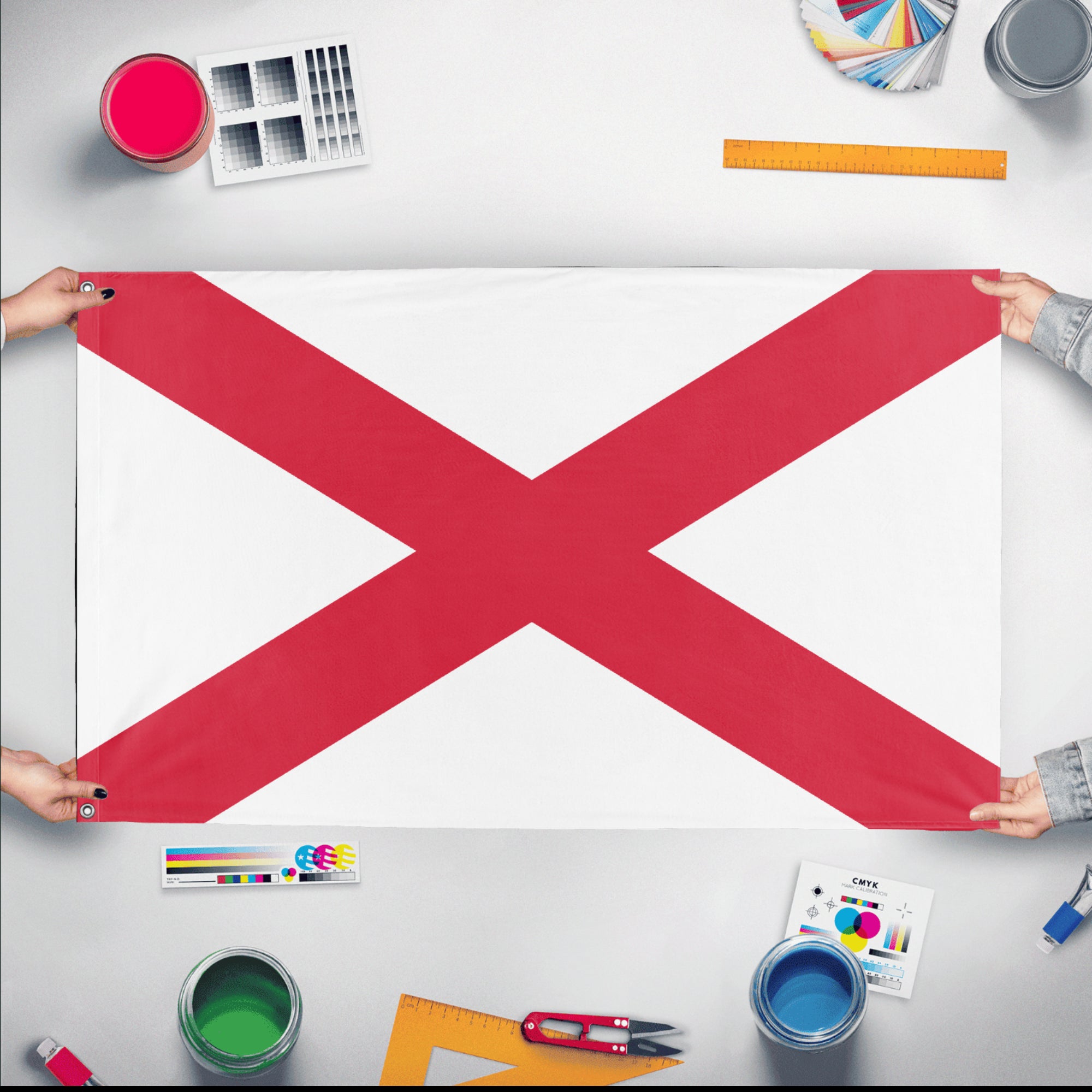 Flagmaker & Print offers best-of-class custom flags in over 32 sizes and variations. Our custom flag print offering ranges from 3x5ft outdoors flags to small desk and hand-waving flags.