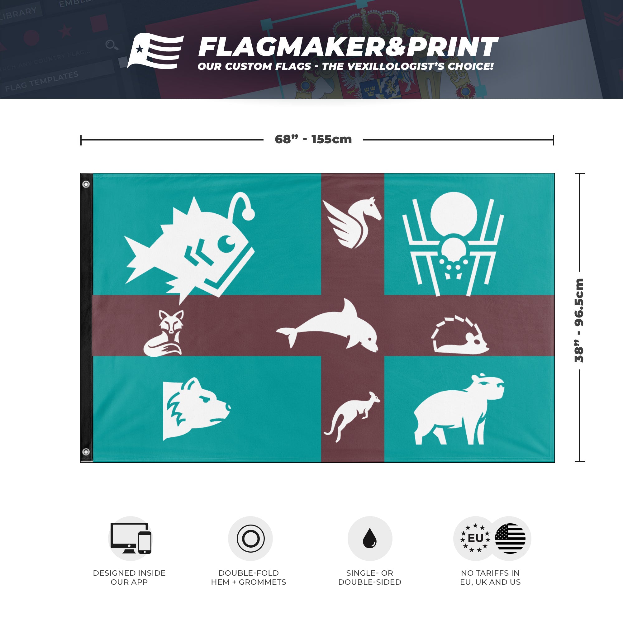 📐 Custom Personalized Flag made with Flagmaker & Print. Learn more about our product line-up on the Product Details page. This custom flag design is available as both a one-sided wall flag, or a double-sided display flag