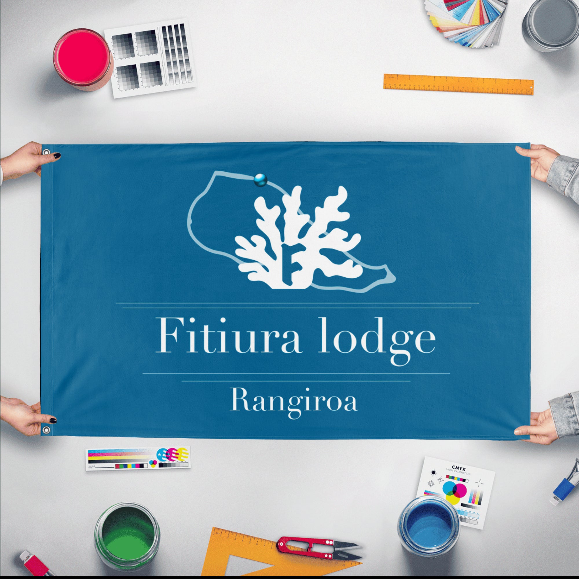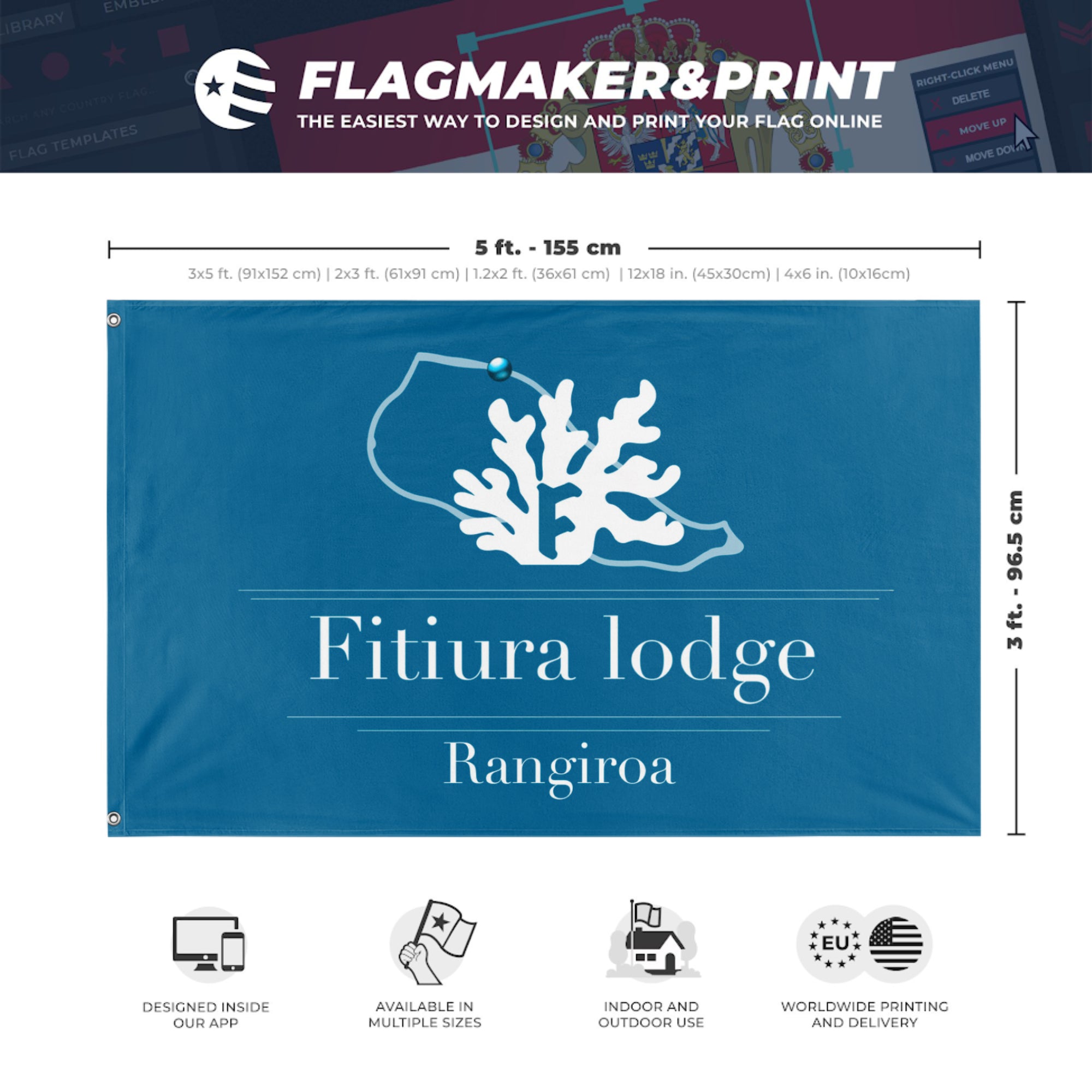 Our integrated flag maker app allows anyone to design and print their own flag. After finishing your design, you can print your flag in three easy steps.