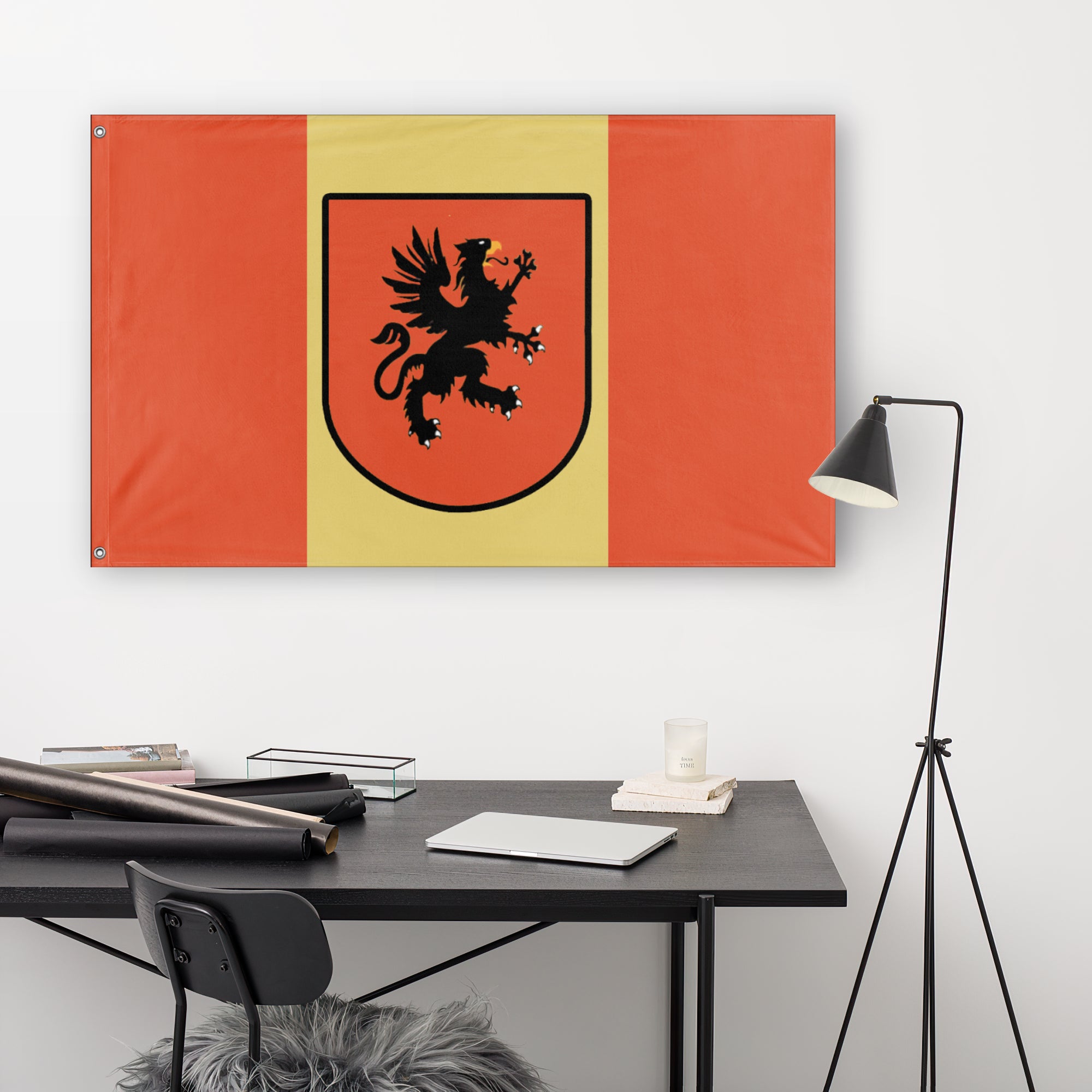 This 36”x60” wall flag is made of 100% polyester knit; equipped with grommets for an authentic look and feel. The flag is a one sided semitransparent print perfect for indoor applications.