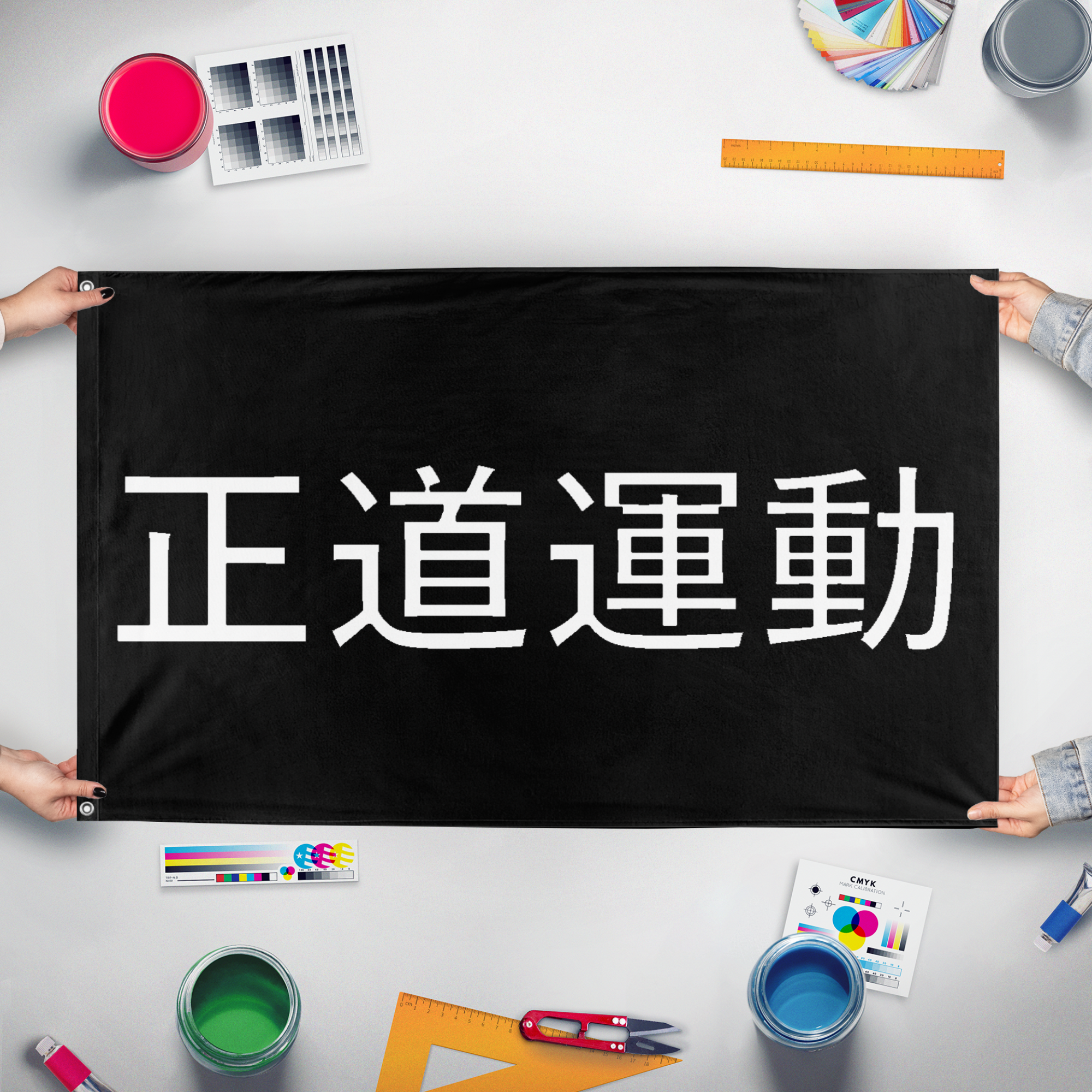 Our integrated flag maker app allows anyone to design and print their own flag. After finishing your design, you can print your flag in three easy steps.