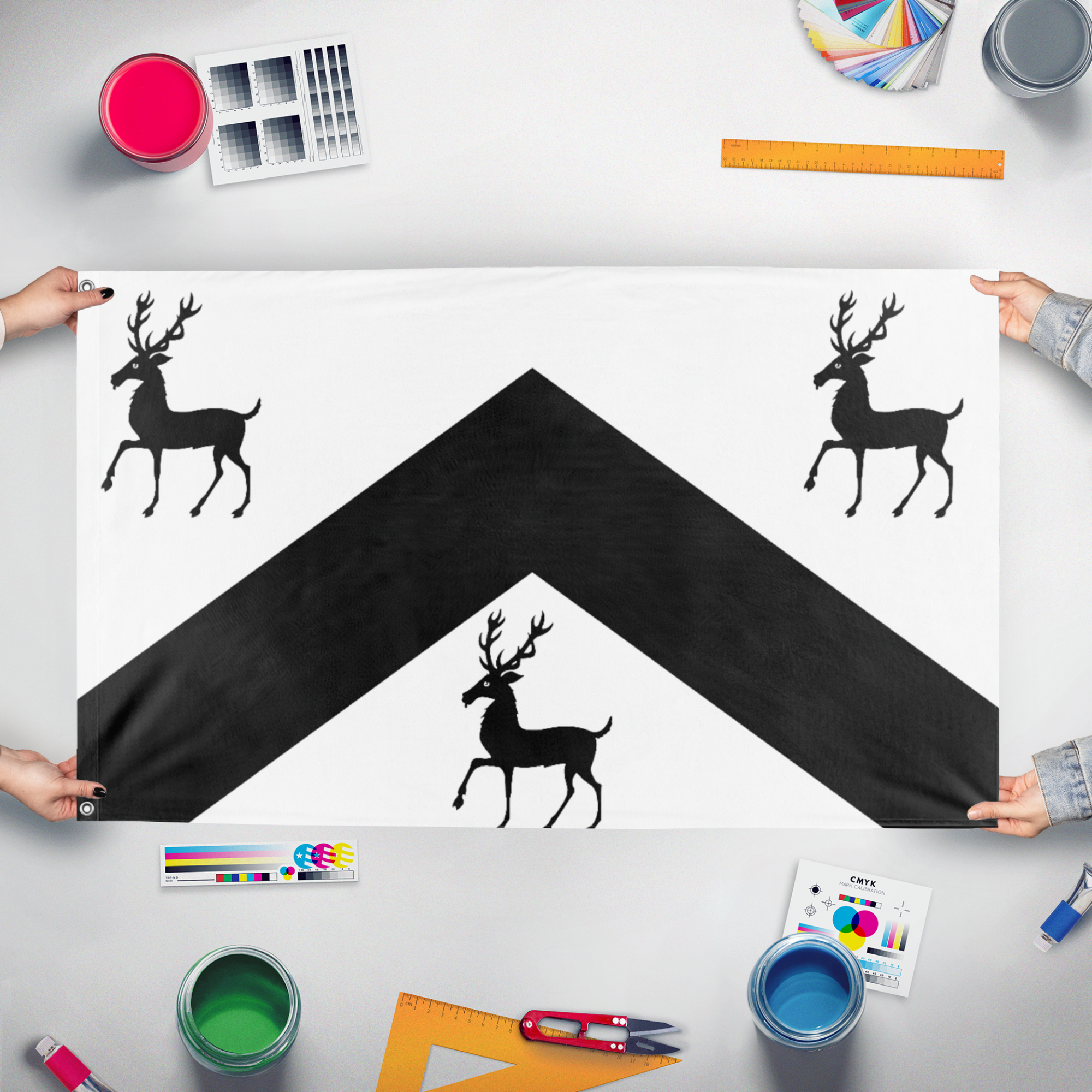 Our integrated flag maker app allows anyone to design and print their own flag. After finishing your design, you can print your flag in three easy steps.