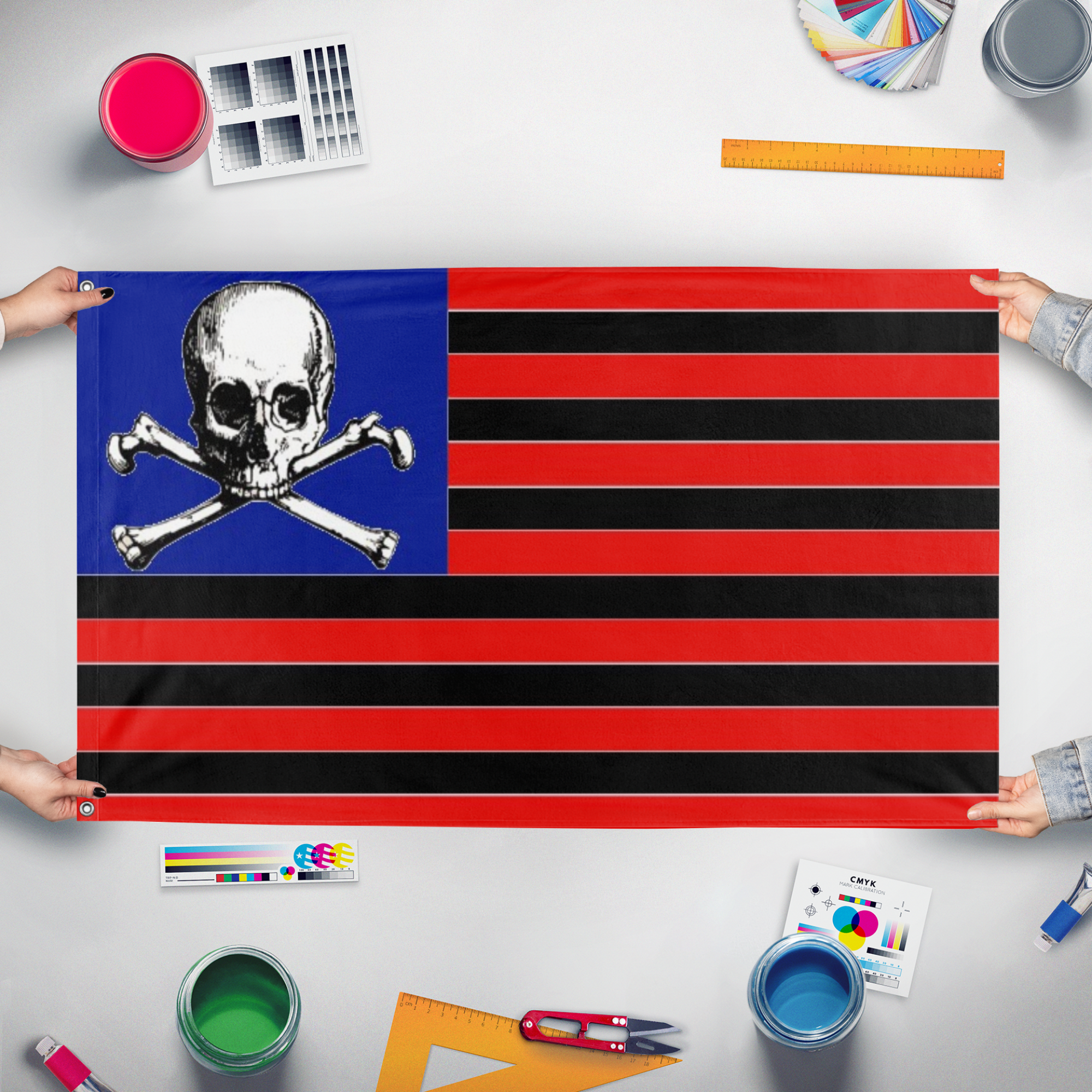 Flagmaker & Print offers best-of-class custom flags in over 32 sizes and variations. Our custom flag print offering ranges from 3x5ft outdoors flags to small desk and hand-waving flags.