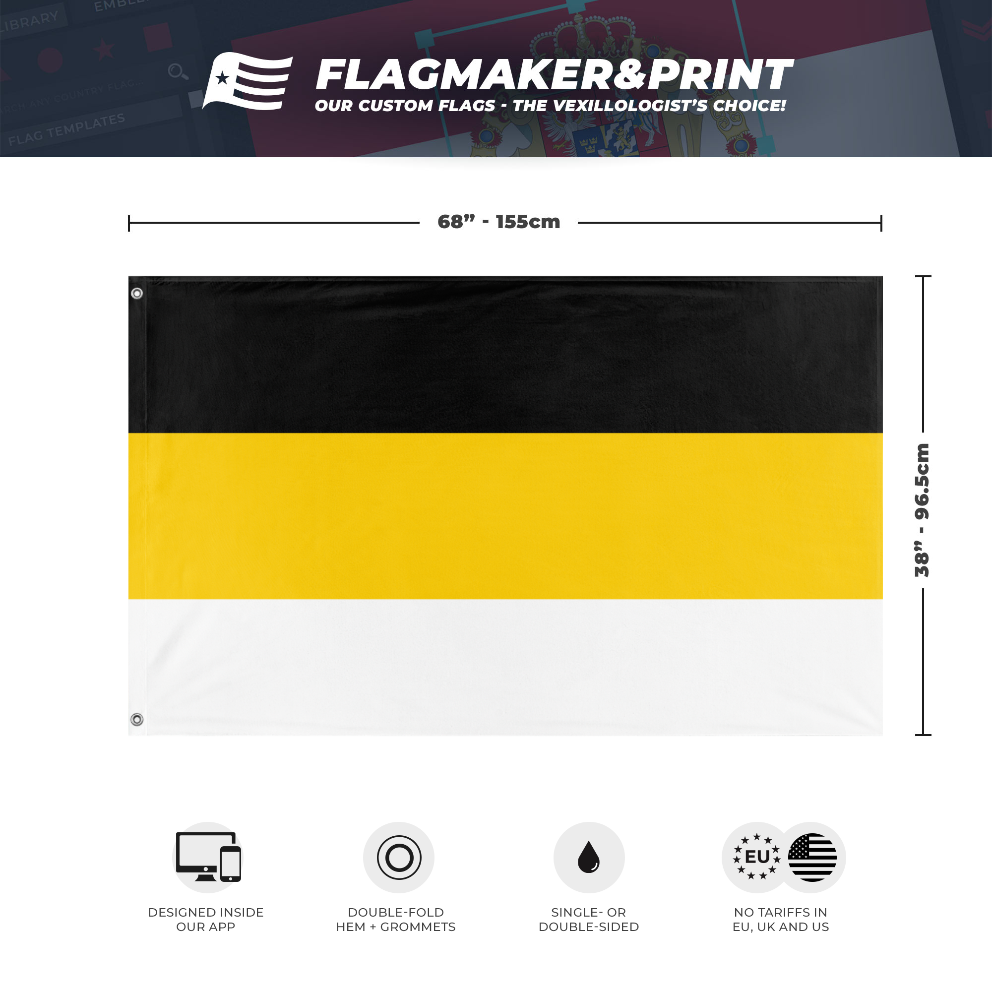 📐 Custom Personalized Flag made with Flagmaker & Print. Learn more about our product line-up on the Product Details page. This custom flag design is available as both a one-sided wall flag, or a double-sided display flag