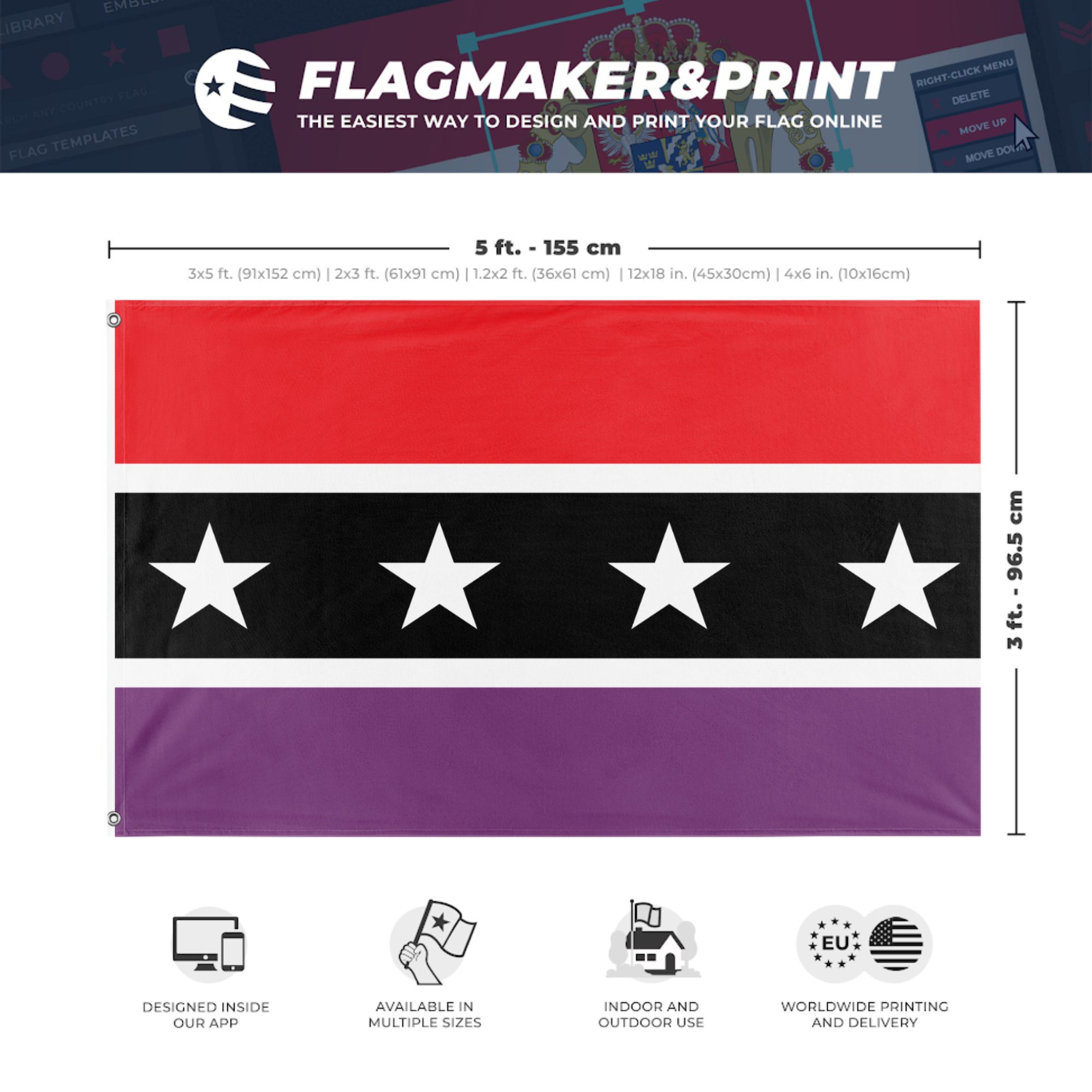 📐 Custom Personalized Flag made with Flagmaker & Print. Learn more about our product line-up on the Product Details page. This custom flag design is available as both a one-sided wall flag, or a double-sided display flag
