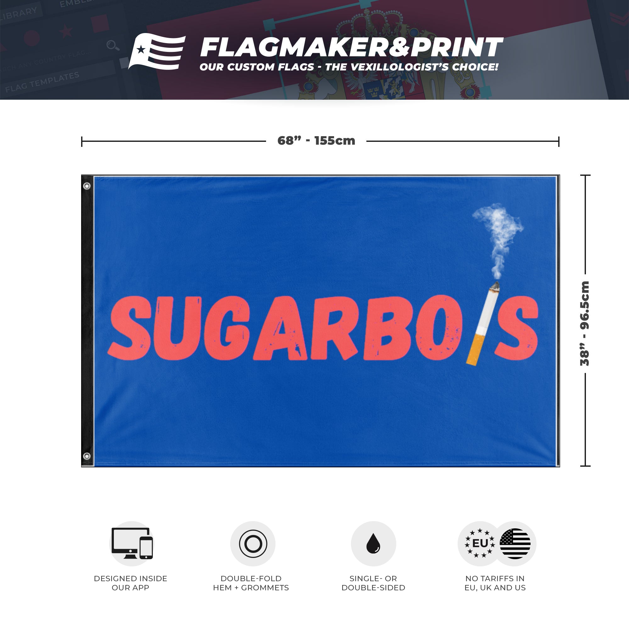 Our 3x5ft flags are made of 100% polyester knit; equipped with grommets for an authentic look and feel. This custom flag design is available as both a one-sided wall flag, or a double-sided display flag.