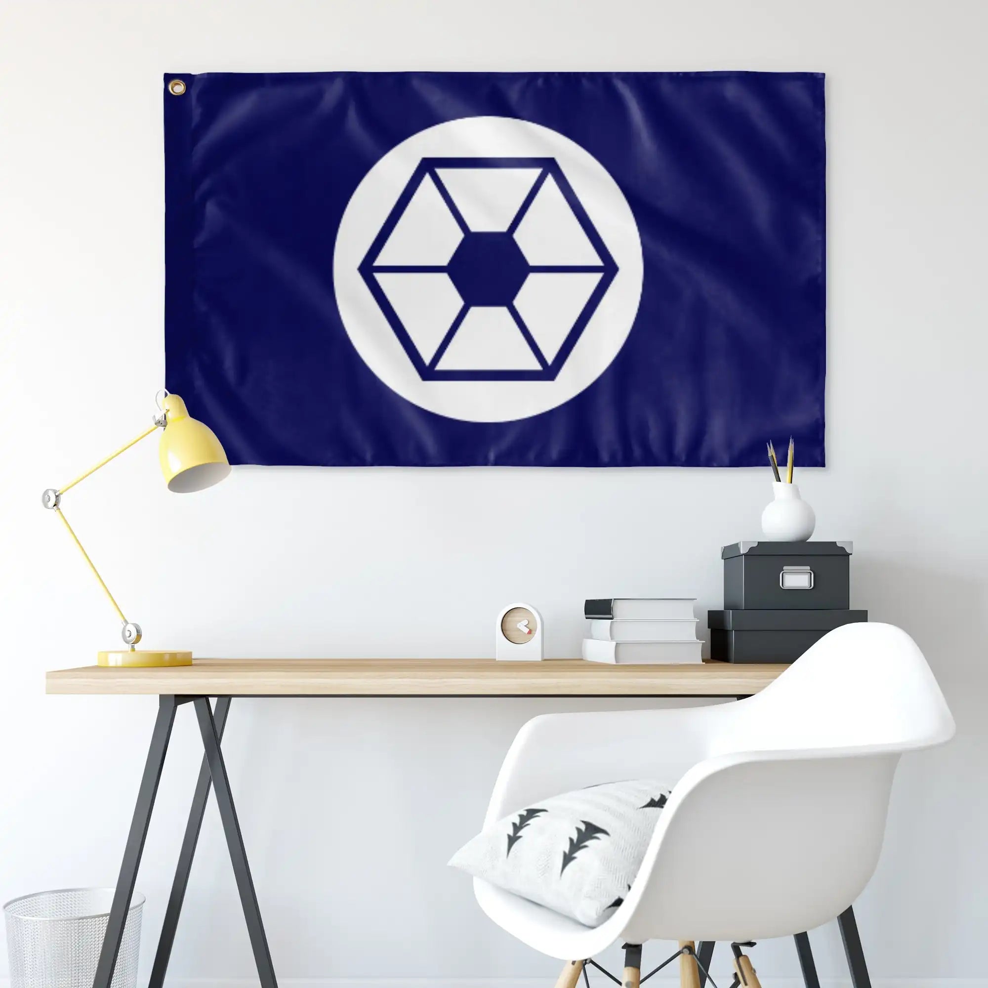 This 36”x60” wall flag is made of 100% polyester knit; equipped with grommets for an authentic look and feel. The flag is a one sided semitransparent print perfect for indoor applications.