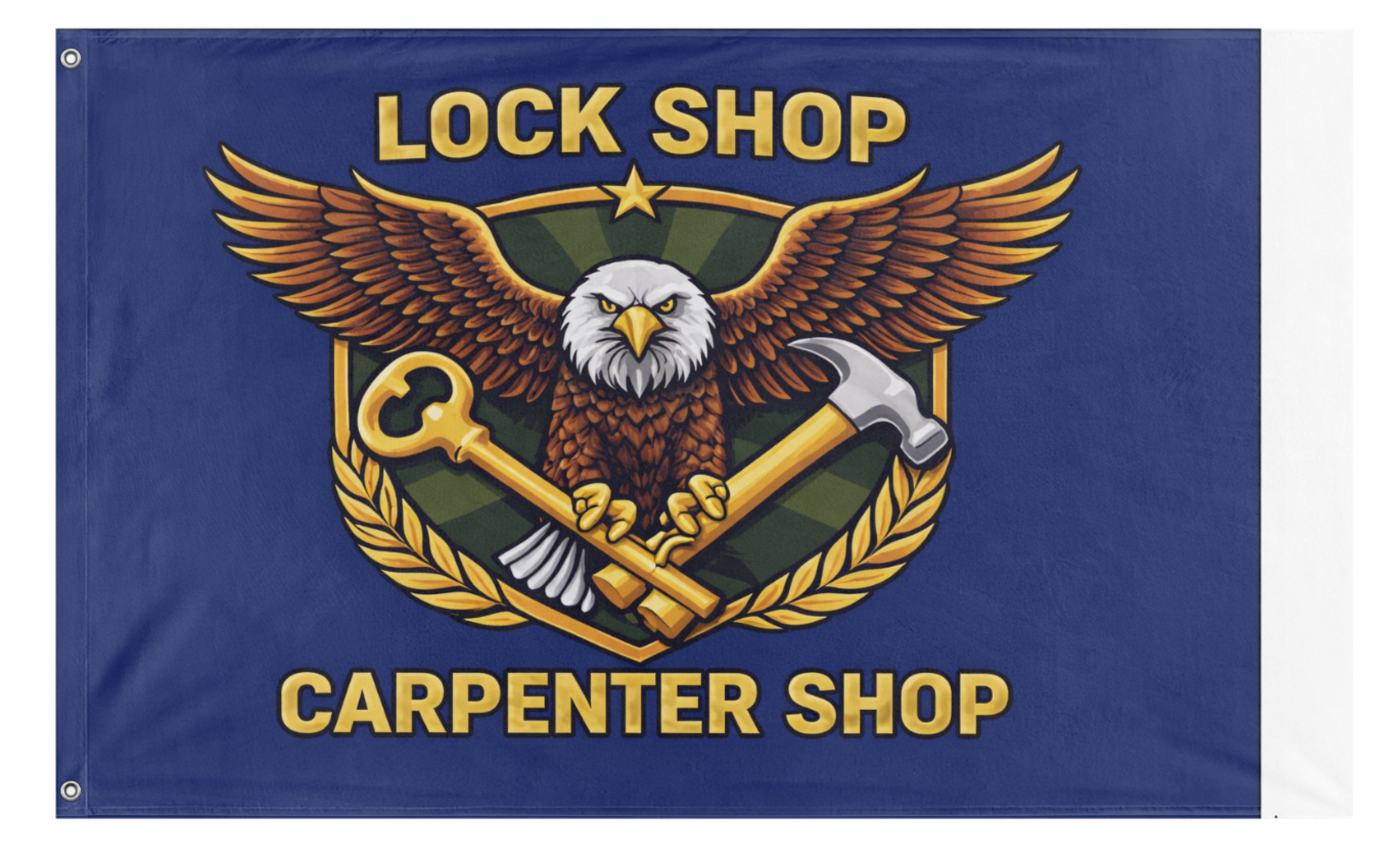 A flag designed to be flown over a lock shop and carpenter shop.