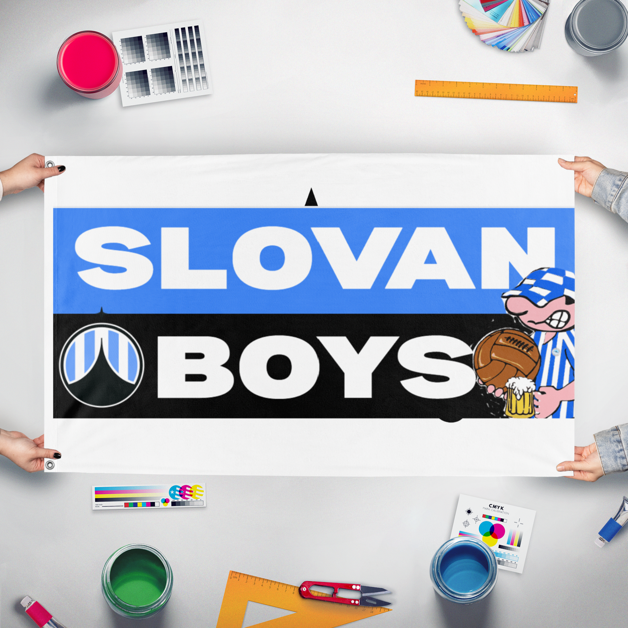 Flagmaker & Print offers best-of-class custom flags in over 32 sizes and variations. Our custom flag print offering ranges from 3x5ft outdoors flags to small desk and hand-waving flags.