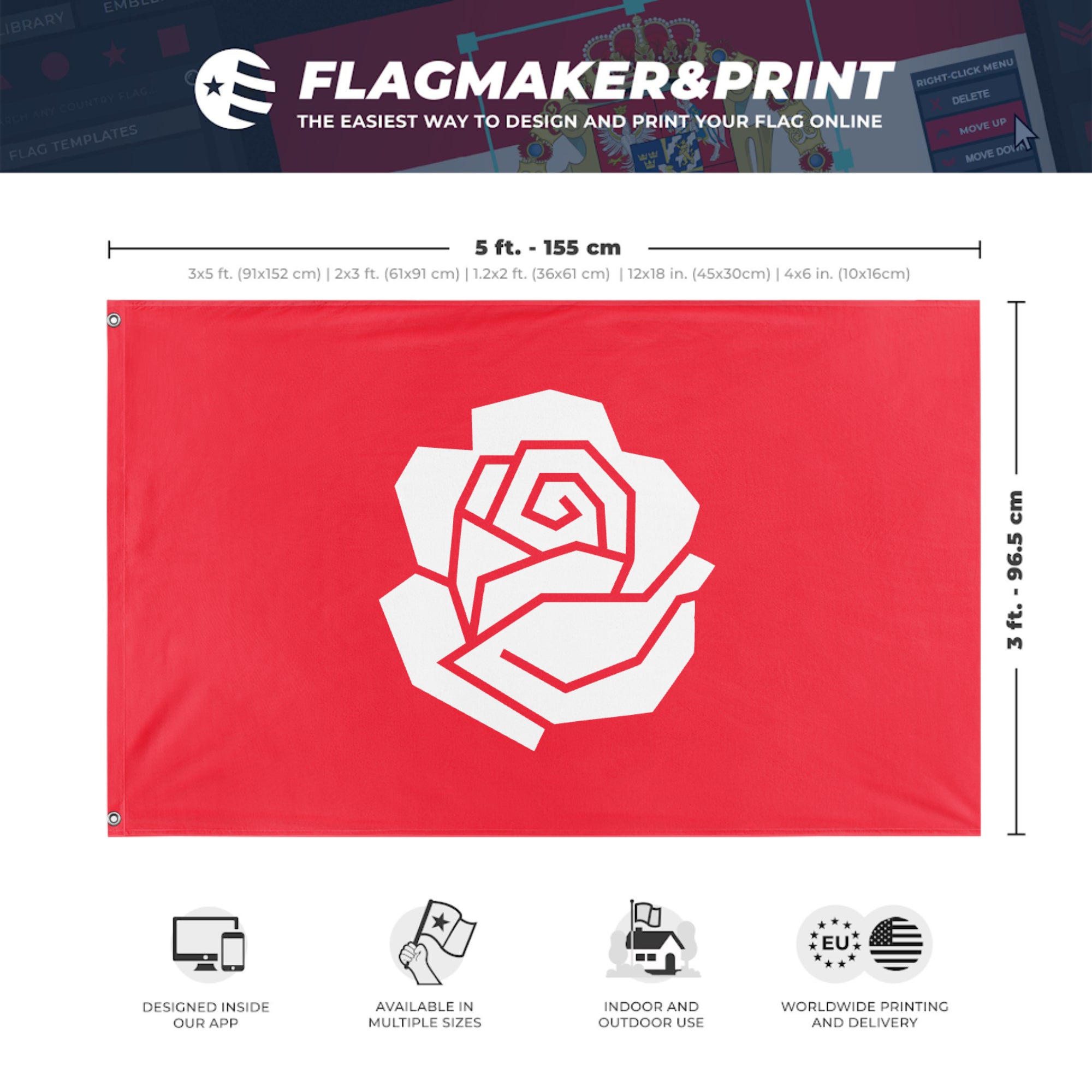 ✒️ The Social Democracy flag does not have a single, universally recognized design, as social democratic movements often adopt symbols reflecting national identity alongside elements of labor and progressive politics. Common motifs include the red rose, symbolizing democratic socialism and labor solidarity, and colors such as red, associated with socialist heritage. The flag may vary by country and political organization, representing a commitment to mixed economies, social justice, and democratic governance. In digital and educational contexts, placeholder or generic designs, such as text-based graphics, are sometimes used to denote the concept of social democracy without endorsing a specific flag.