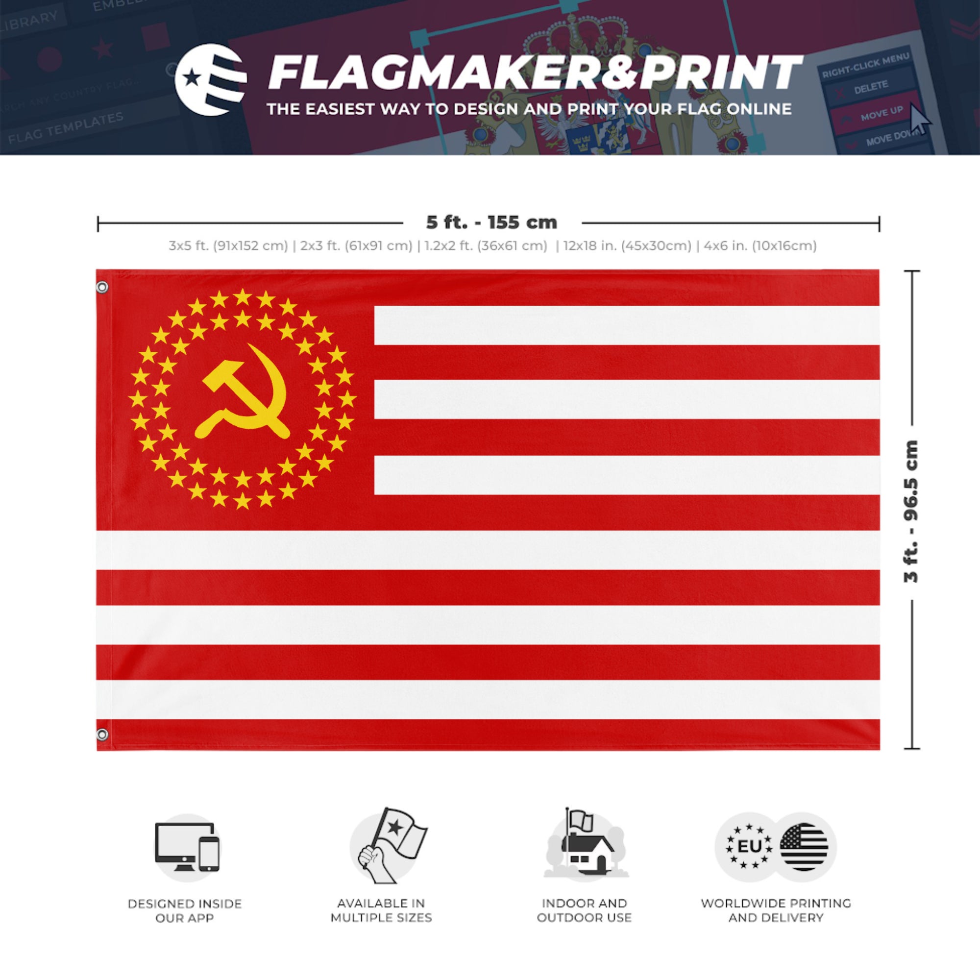 ✒️ The Socialist America Flag is a conceptual or symbolic flag used to represent the vision of a socialist United States, blending traditional American imagery with socialist iconography. Variations of the flag often incorporate elements such as the red color associated with labor movements, the raised fist symbolizing solidarity and resistance, or stars reimagined to reflect collective governance and equality. While not an official or standardized emblem, the flag is employed in political art, protest materials, and speculative discourse to express support for democratic socialism, economic justice, and the restructuring of American society along egalitarian and cooperative lines. Its design and interpretation vary widely, reflecting the diverse currents within American leftist thought.