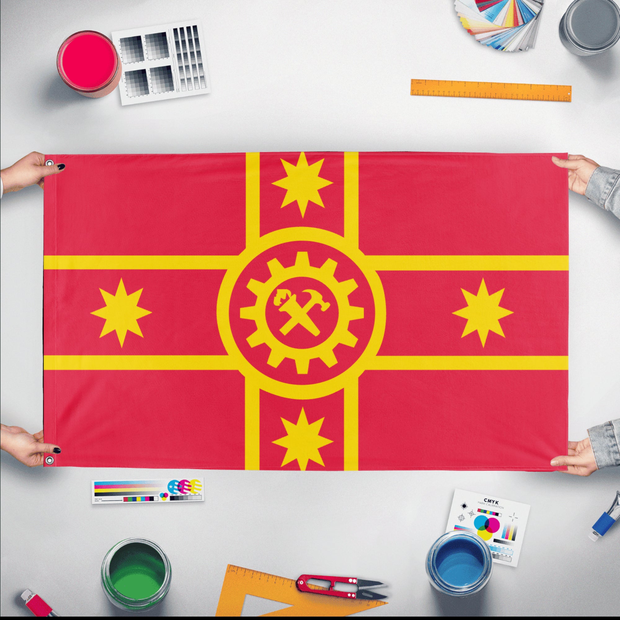 ✒️ The Socialist Australia Flag is a conceptual reinterpretation of Australia’s national flag, designed to embody socialist ideals such as workers’ rights, economic equality, and social justice. While the official flag features a blue field with the Union Jack in the canton and the Southern Cross constellation, socialist versions often replace or overlay these elements with socialist symbols like the red star, hammer and sickle, or raised fists. The blue background may be replaced or complemented by red to signify labor movements. These designs are used by leftist groups and activists to express a vision of Australia grounded in socialism and collective welfare, while often maintaining elements of the national identity.