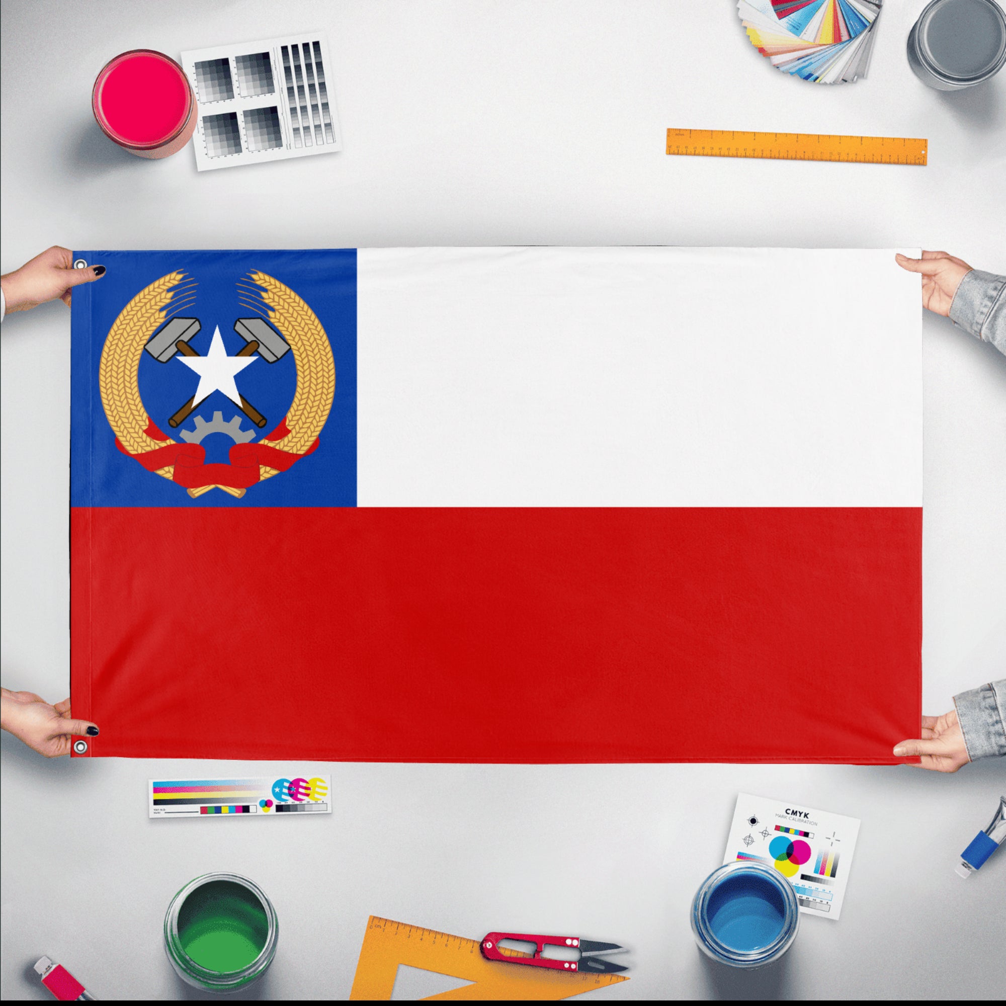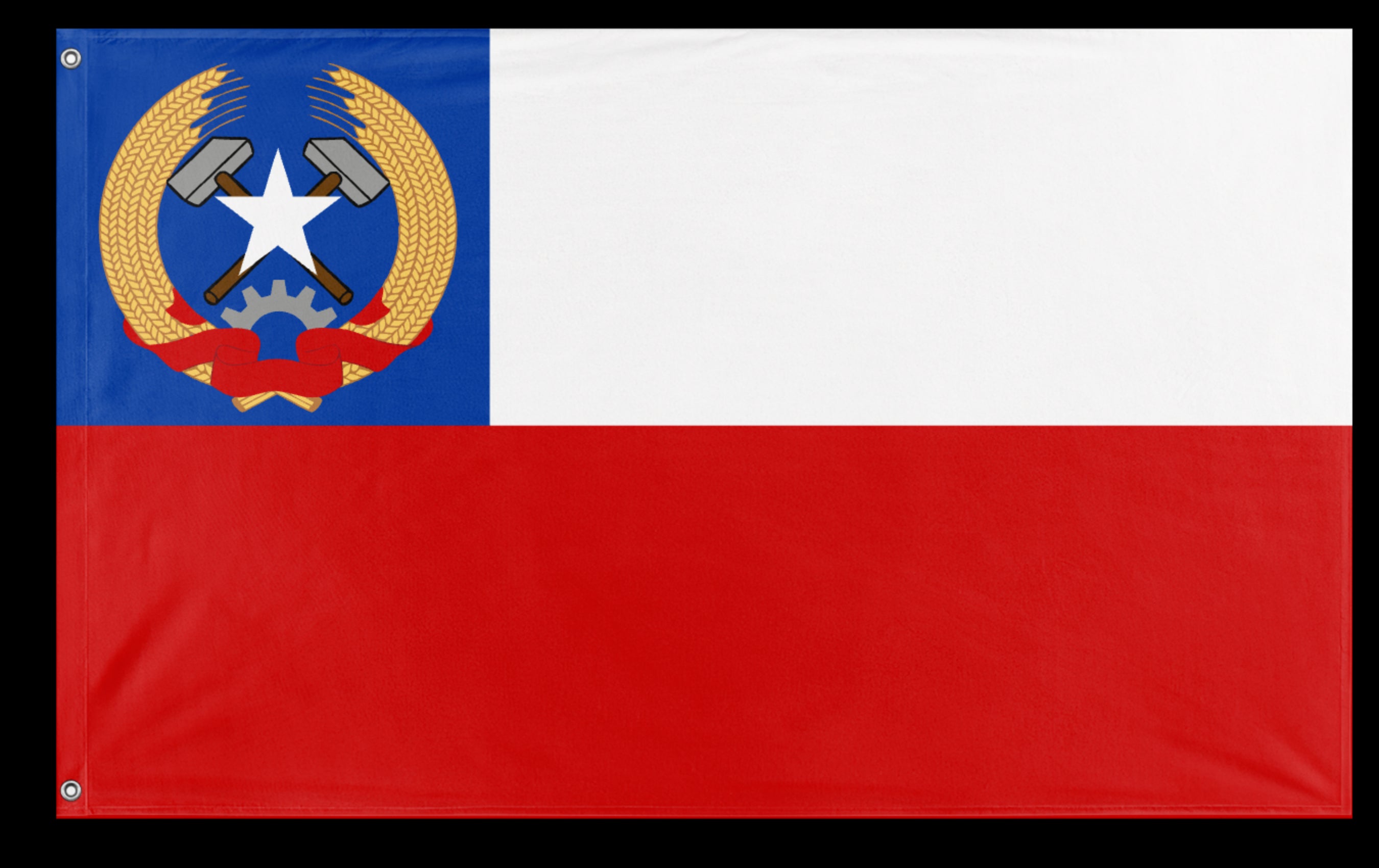 ✒️ The Socialist Chile Flag is a conceptual reinterpretation of Chile’s national flag infused with socialist symbolism to express ideals of workers’ rights, social equality, and political change. While the official flag features a blue canton with a white star alongside horizontal white and red stripes, socialist versions often emphasize red and incorporate symbols such as the red star, hammer and sickle, or imagery associated with labor movements. These adaptations highlight the legacy of Chile’s socialist movements, particularly during the era of Salvador Allende, and are used by leftist groups to advocate for social justice and economic reform.