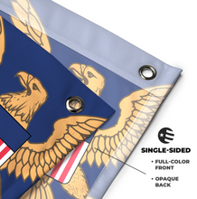 This 36”x60” wall flag is made of 100% polyester knit; equipped with grommets for an authentic look and feel. The flag is a one sided semitransparent print perfect for indoor applications.