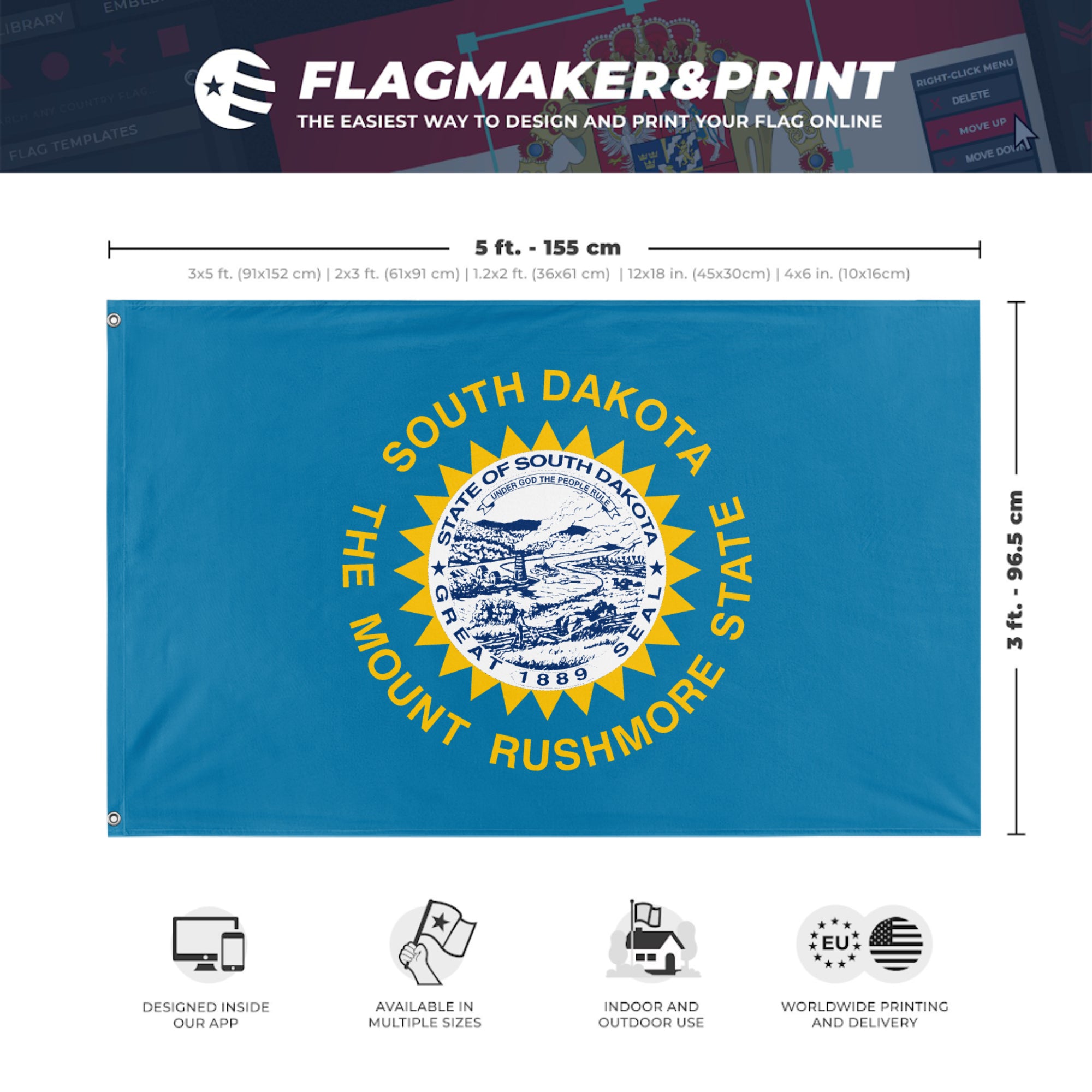 Our integrated flag maker app allows anyone to design and print their own flag. After finishing your design, you can print your flag in three easy steps.