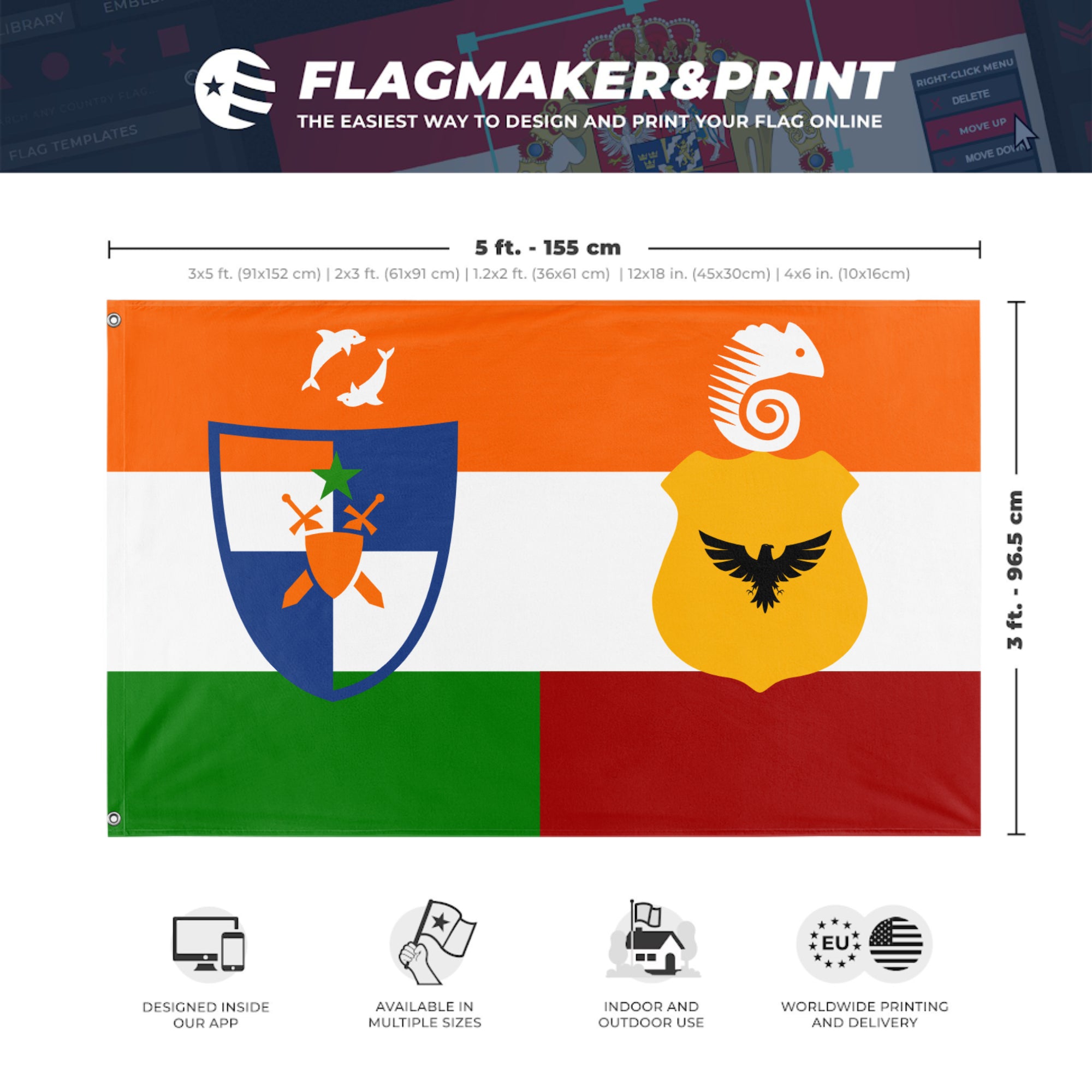 📐 Custom Personalized Flag made with Flagmaker & Print. Learn more about our product line-up on the Product Details page. This custom flag design is available as both a one-sided wall flag, or a double-sided display flag