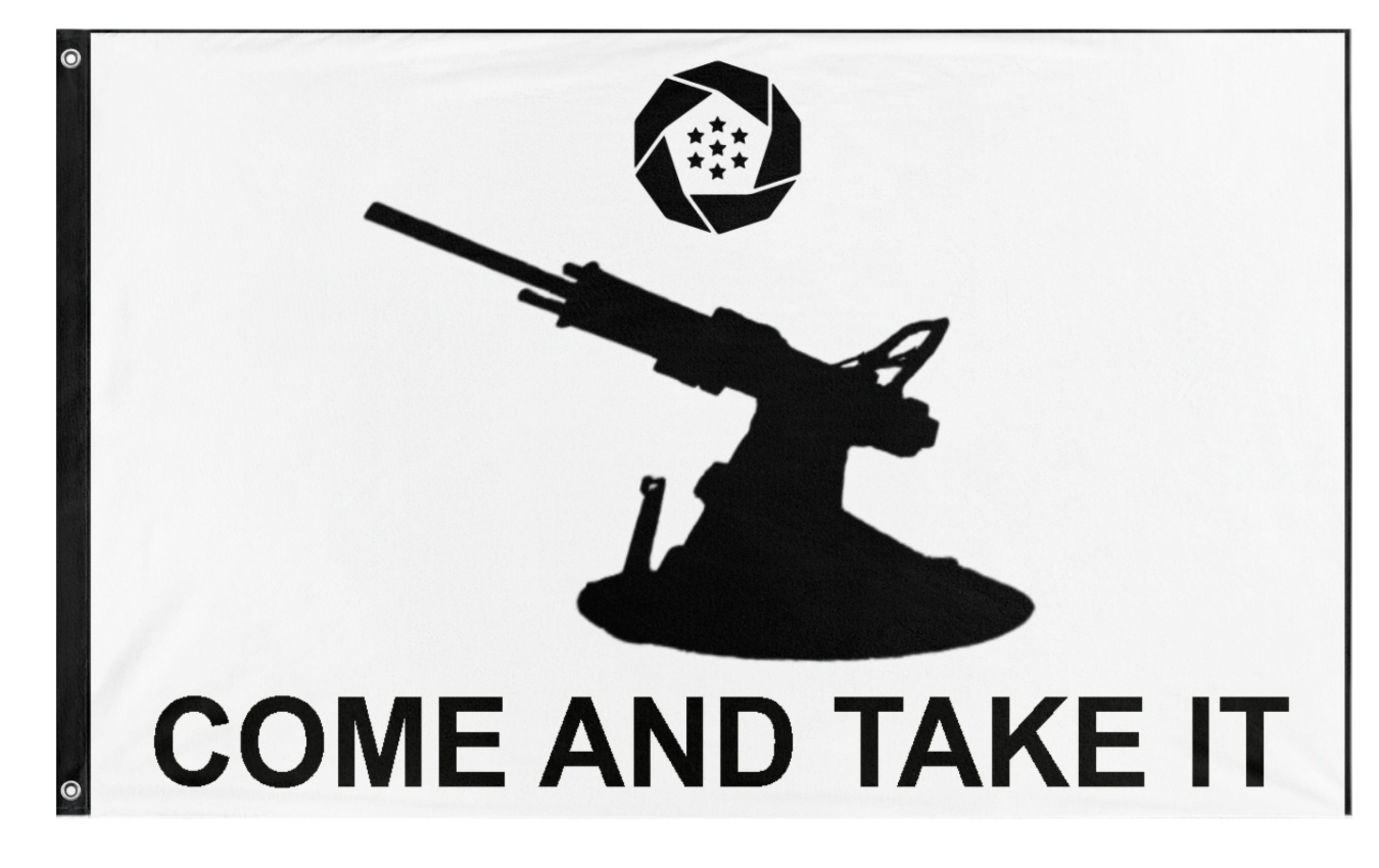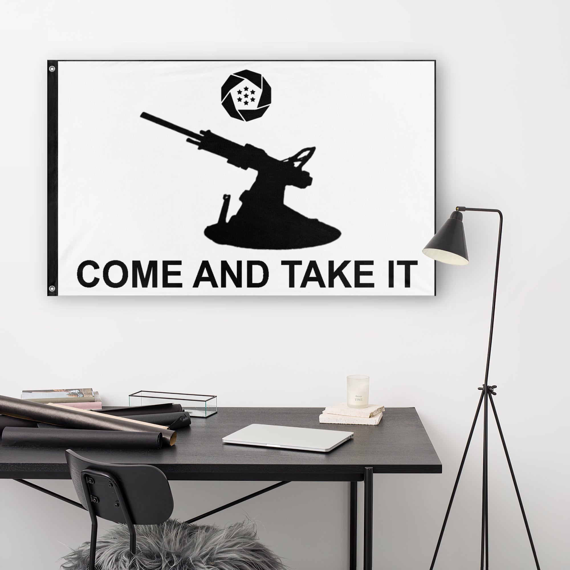 ✒️ Parody of the "Come and Take It" flag from the Battle of Gonzales during the Texas Revolution based on Ace Combat 7. Features anti-asteroid railgun cannon from Stonehenge as well as the symbol of the Kingdom of Erusea.