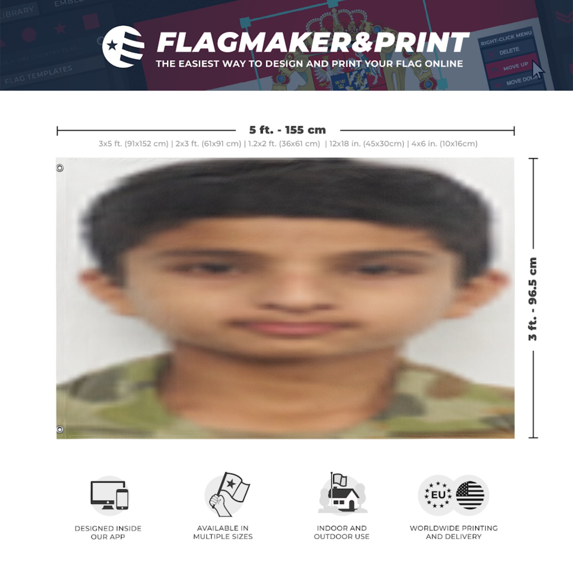 Our integrated flag maker app allows anyone to design and print their own flag. After finishing your design, you can print your flag in three easy steps.
