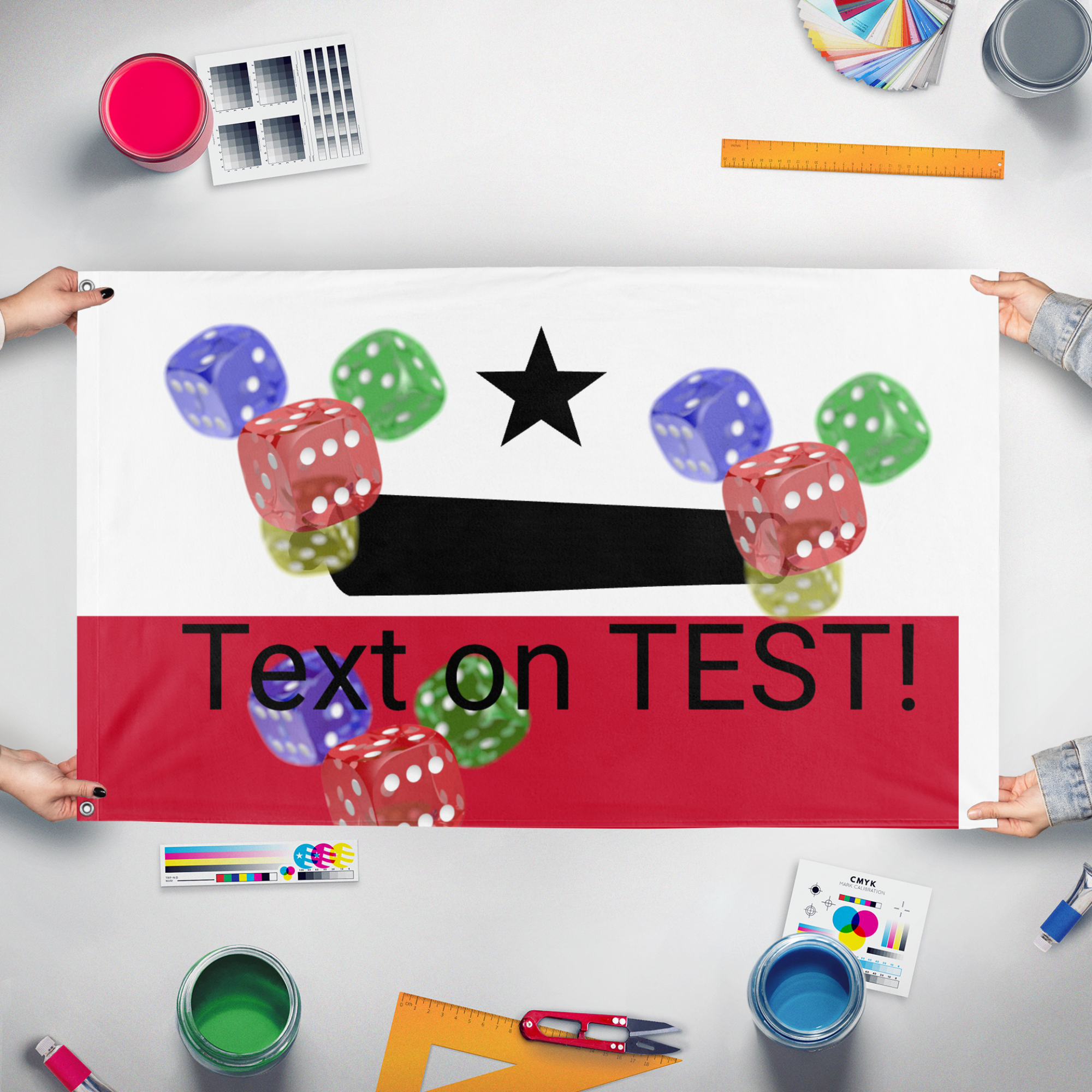 Our integrated flag maker app allows anyone to design and print their own flag. After finishing your design, you can print your flag in three easy steps.